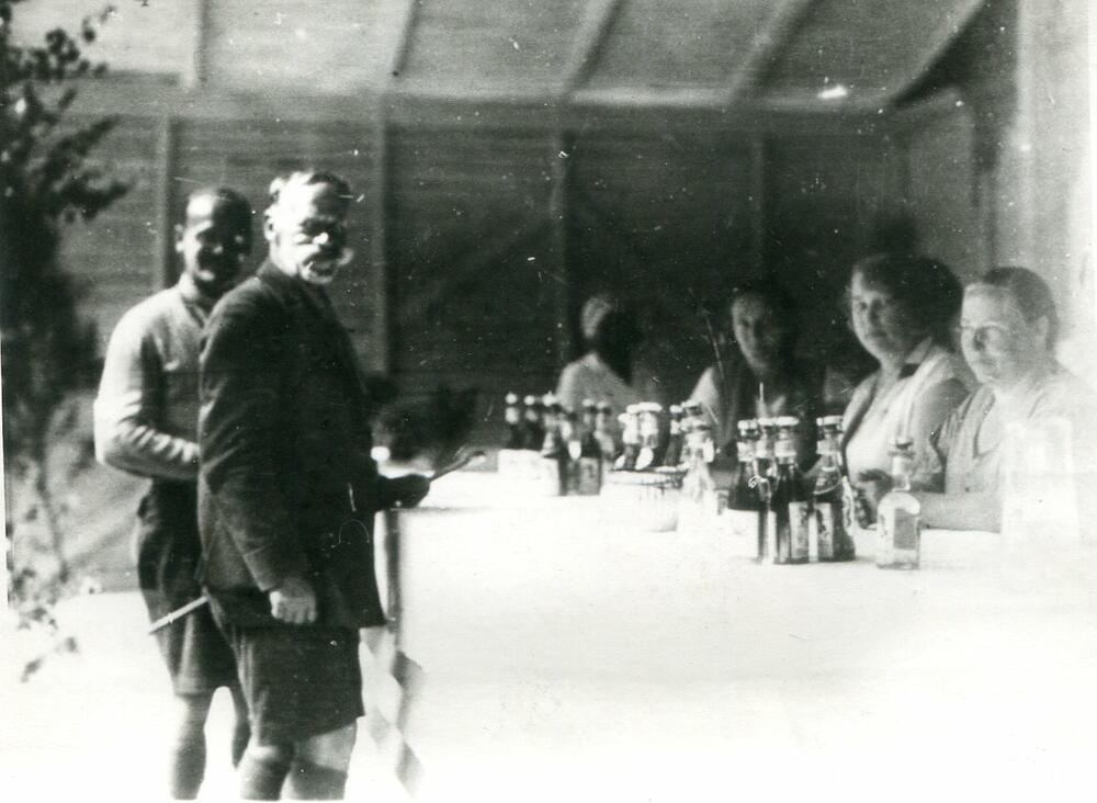 Kiosks Latvijas skautu 3. Lielās nometnes laikā Asaros. Nometnes laikā Skautu draugu komiteja bija ierīkojusi vairākus kioskus (veikali, frizētava, laikraksti), kas deva 5000 latu ienākumus. Priekšplānā Latvijas Skautu centrālās organizācijas centrālās pārvaldes priekšnieks (1921-1940), ģenerālis Kārlis Goppers.