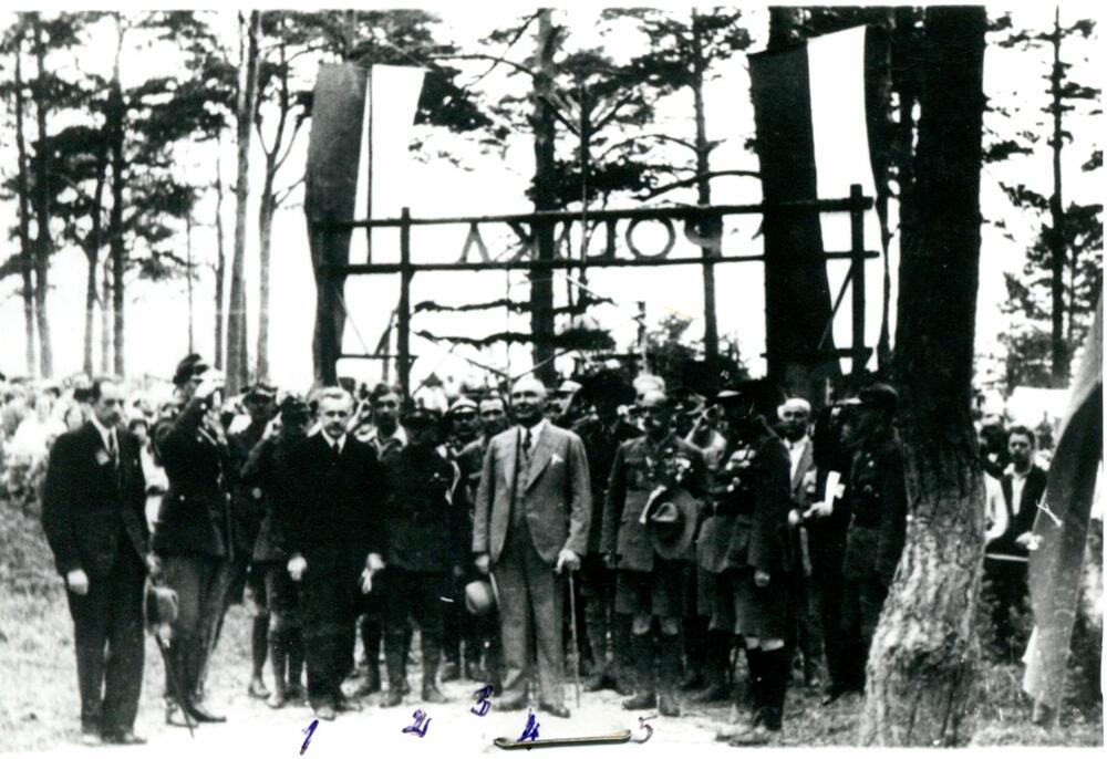 Latvijas Republikas Valsts prezidents Alberts Kviesis apmeklē Polijas skautu vienību, 3. Lielajā nometnē Asaru kāpās. 1. rindā no kreisās: 3. Polijas sūtnis Latvijā Z. Bečkovičs, 4. Polijas skautu prezidents, Zakopanes vojevoda Dr. M. Gražinskis, 5. Alberts Kviesis, 6. Latvijas Skautu centrālās organizācijas centrālās pārvaldes priekšnieks (1921-1940), ģenerālis Kārlis Goppers, 7. Latvijas skautu priekšnieks un 3. Lielās nometnes priekšnieks Jāzeps Dombrovskis.