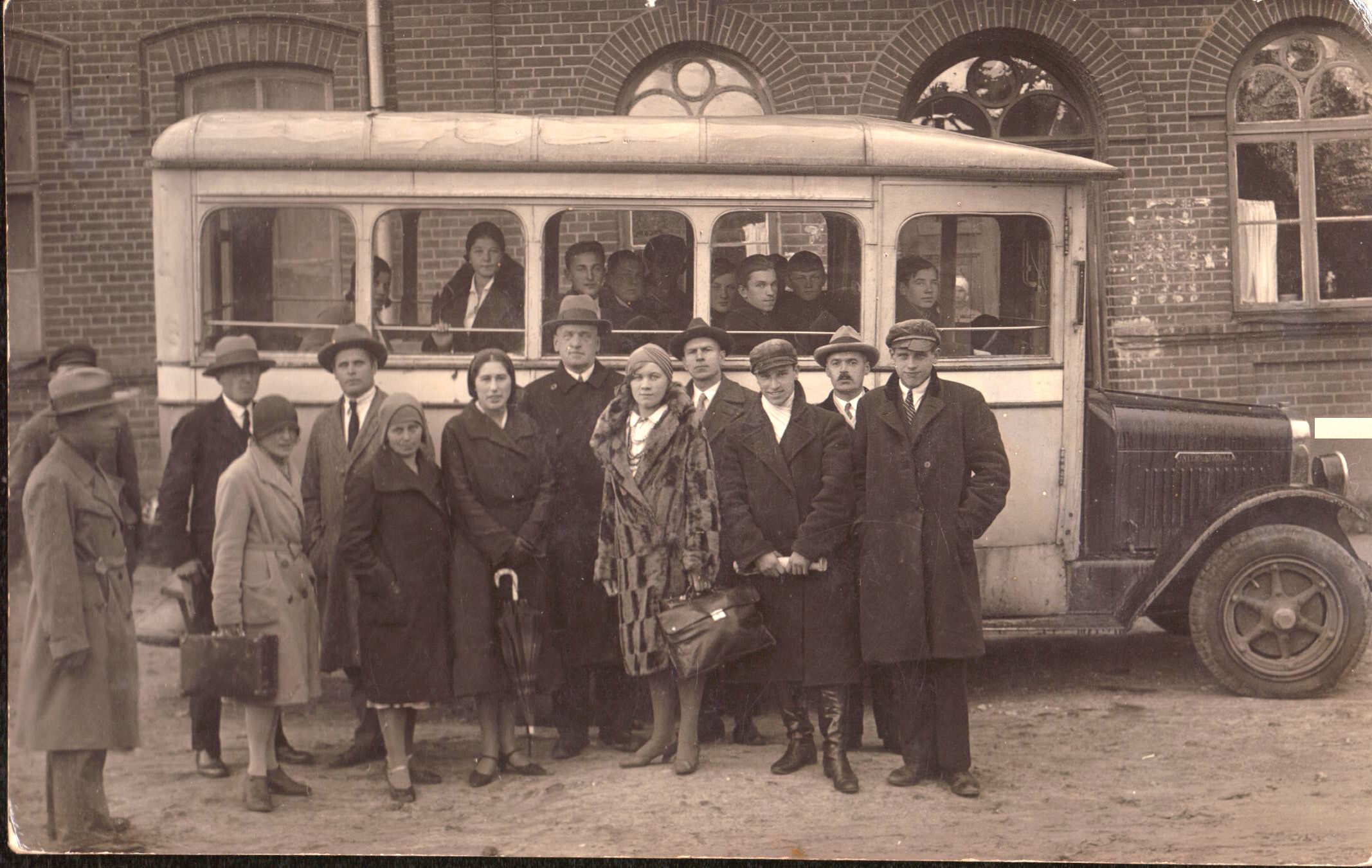 Teātra trupa pie autobusa pirms došanās teātra tūrē 1931. gada 13. septembrī.