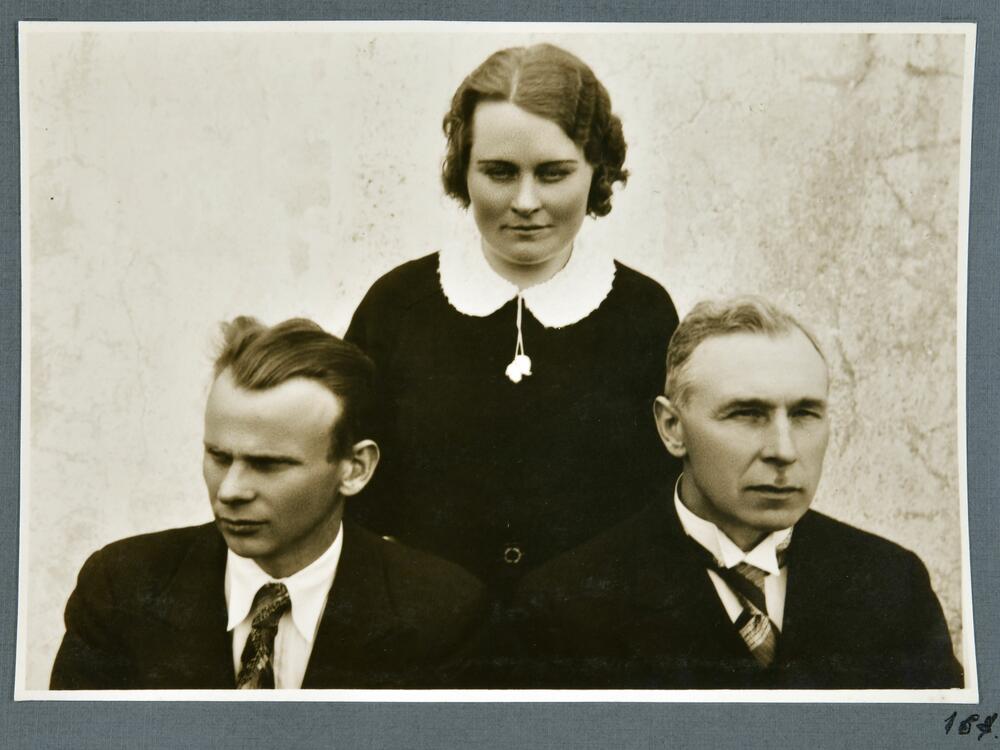 Ziemupes pagasta 6-klašu pamatskolas skolotāji, starp tiem skolas direktors J. Ciemgalis (no 1938. gada Aizputes skolas pārzinis). Grupas foto.