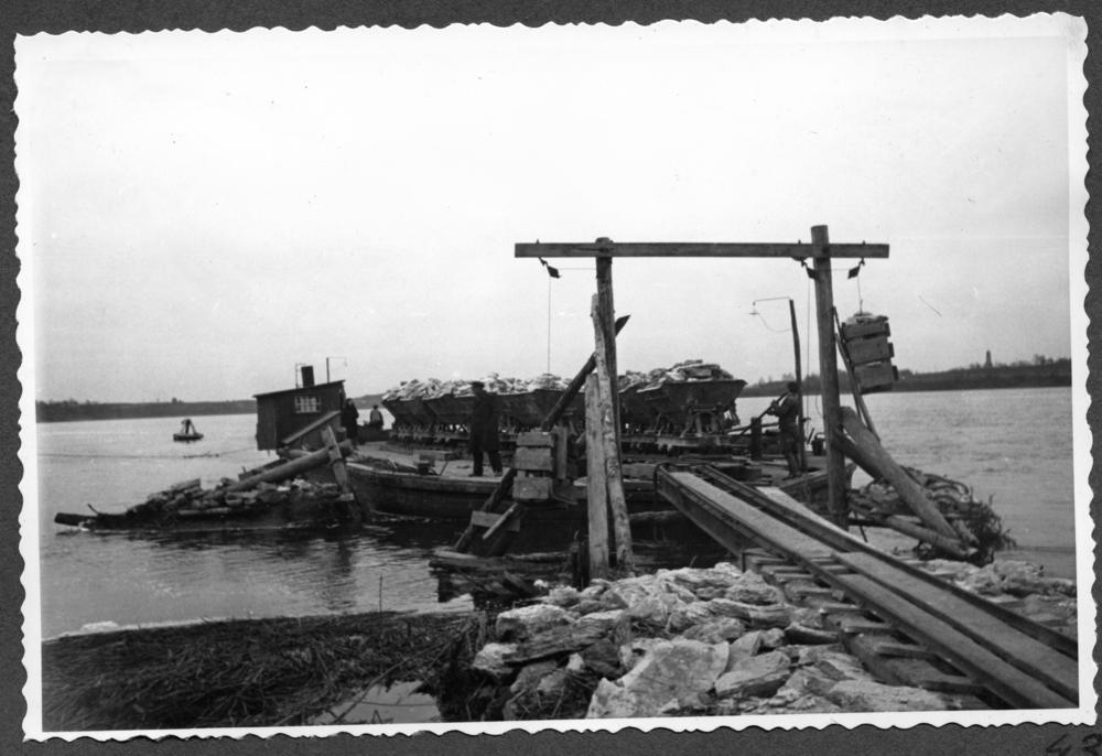 Prāmis ar vagonetēm pie ģipšakmens lauztuvēm