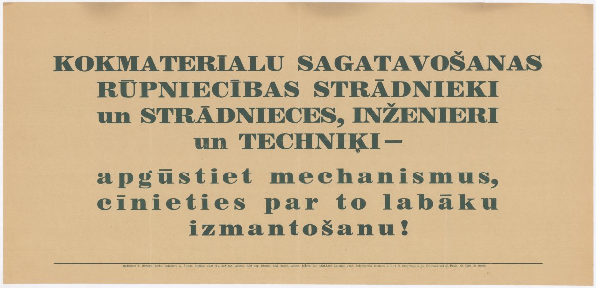 Kokmaterialu sagatavošanas rūpniecības strādnieki un strādnieces, inženieri un techniķi - apgūstiet mechanismus, cīnieties par to labāku izmantošanu!