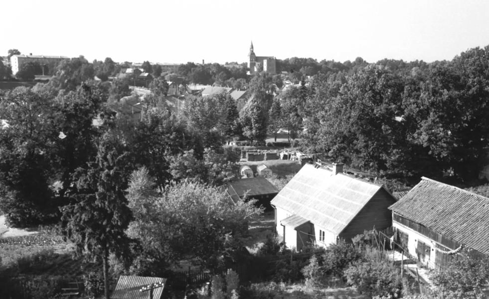 Fotogrāfijā redzamas privātmājas ar mazdārziņiem Pārgaujā 1987.gadā. Pārgauja ir Valmieras pilsētas daļa Gaujas kreisajā krastā. Tālumā redzama Valmieras Sv.Sīmaņa ev.lut. baznīca.