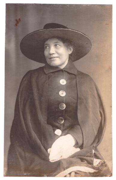 Fotogrāfijā redzama Anna Valdmane Tobija meita (dzim. Bērziņa) - pirmā Latvijas Republikas goda konsula Šanhajā (Ķīnā) Roberta Valdmaņa sieva. Fotogrāfijas labajā stūrī iespiests zīmogs ar uzrakstu ķīniešu valodā.