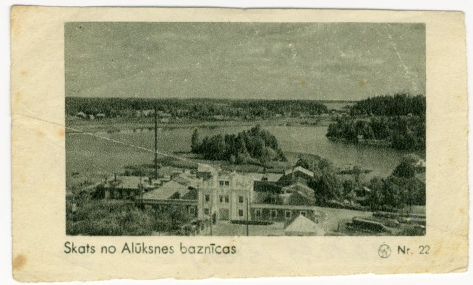 Roberta Šlosa uzņēmums 1920. gadu beigās. Skats no Alūksnes luterāņu baznīcas. Mūsdienās tur bija ierīkota Valsts Alūksnes komutācijas tehnikas mezglu rūpnīca. Rūpnīca likvidēta. Fonā redzams Alūksnes ezers un tā salas