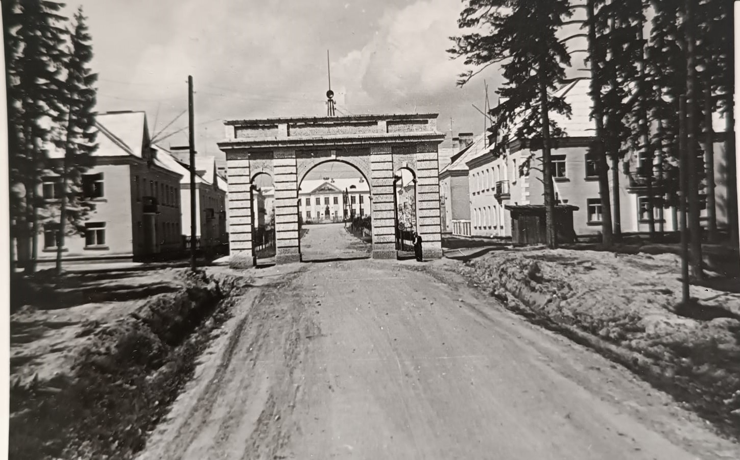 Fotogrāfijā redzama triumfa arka Sedas ciematā. Tā atradusies Miera ielas sākumā. Celta 20.gs.60.g.sāk. Nojaukta ap 1971.gadu, kad kļuvusi par šauru lielāka izmēra transportam.