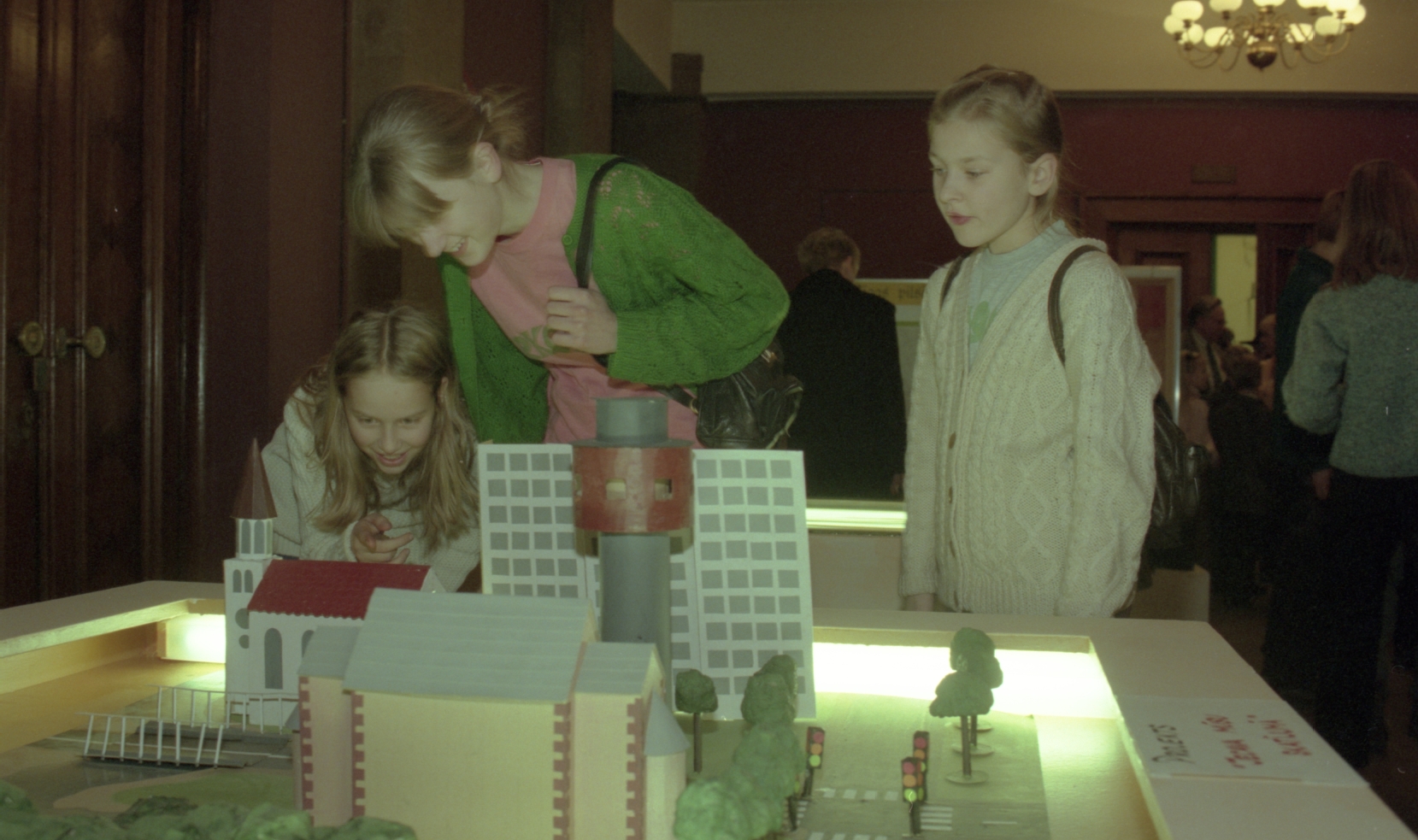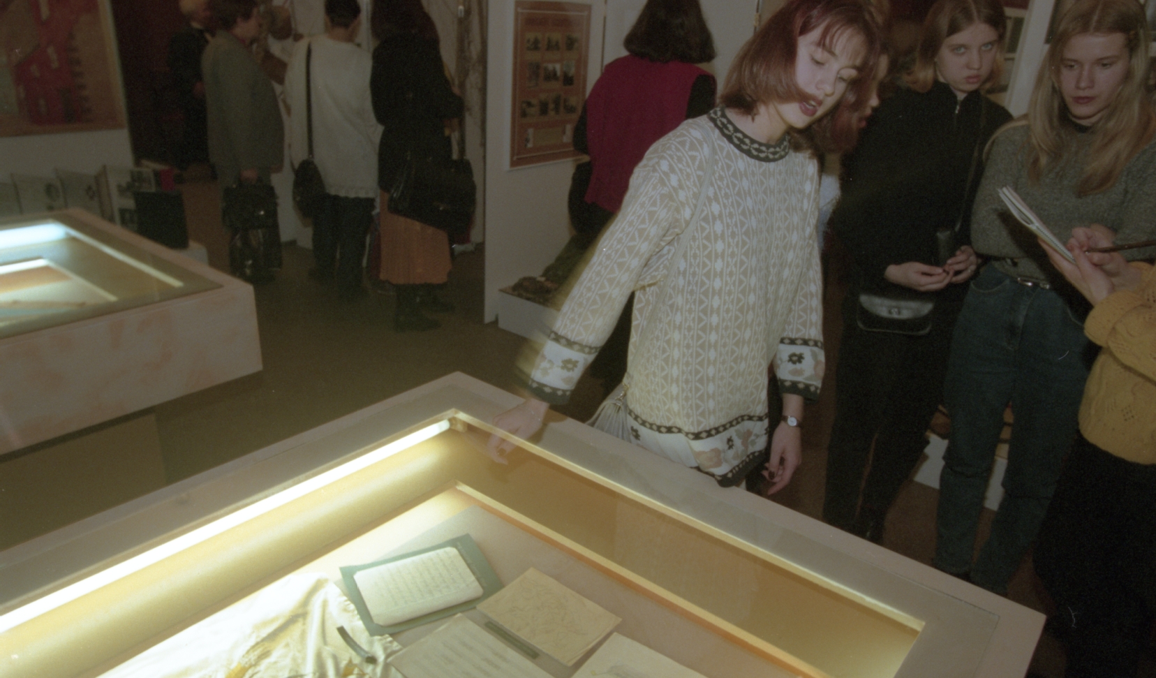 Ziemeļvalstu ģimnāzija. Kara muzejā jaunietes.