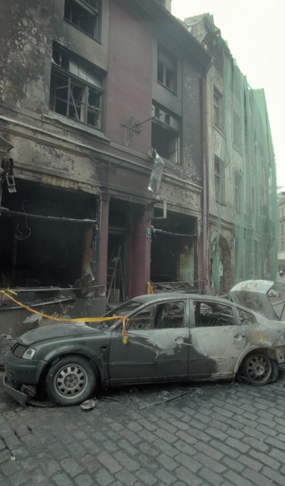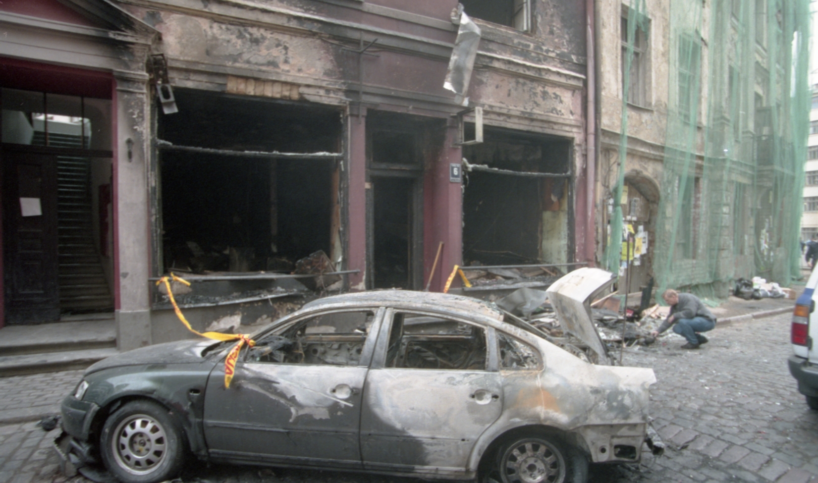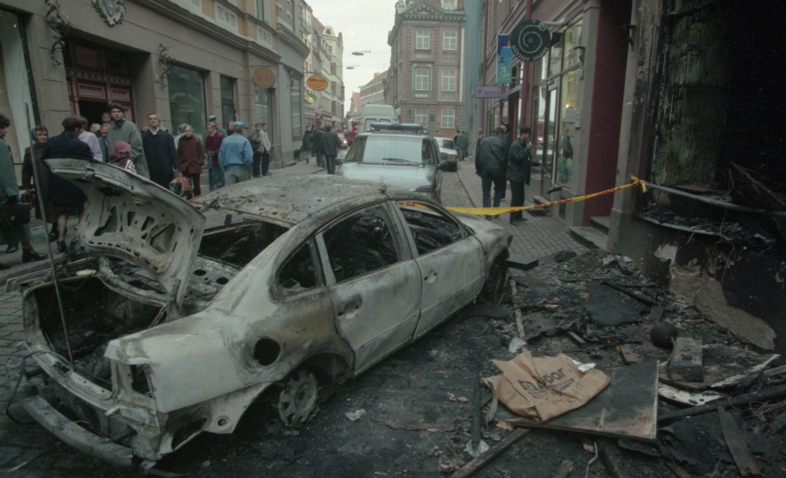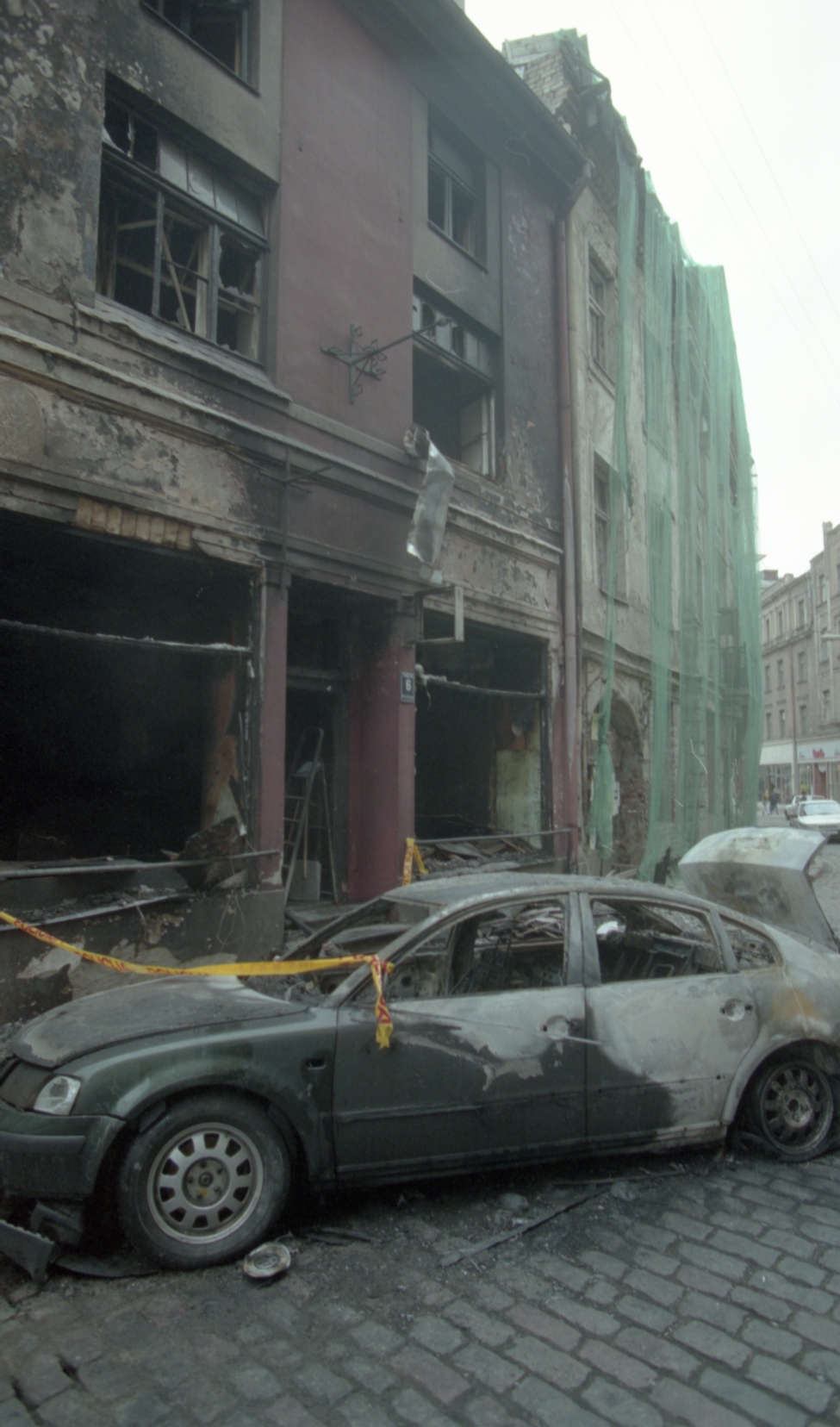 Uzspridzinātais VW auto Audēju ielā. Skolotājs Sika no Carnikavas.