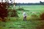 Salaspils Buļļu māju saimnieka dēls Artūrs Zāle Juniors pie Buļļu mājām pļauj zāli.