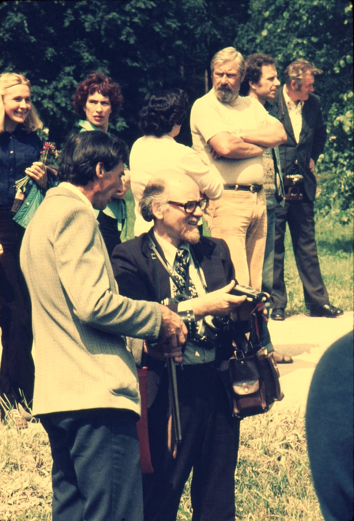 Priekšplānā fotogrāfs Gunārs Binde, tolaik Daugavas muzeja štata fotogrāfs.