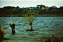 Redzams Daugavas kreisais krasts pretī Salaspils Laukskolai, ūdens līmenis Rīgas HES vajadzībām jau ir paaugstināts, priekšplānā redzami applūdināti Laukskolas teritorijas koki. Daļa koku tika nozāģēti vēl pirms uzplūdināšanas, bet visus nepaspēja.