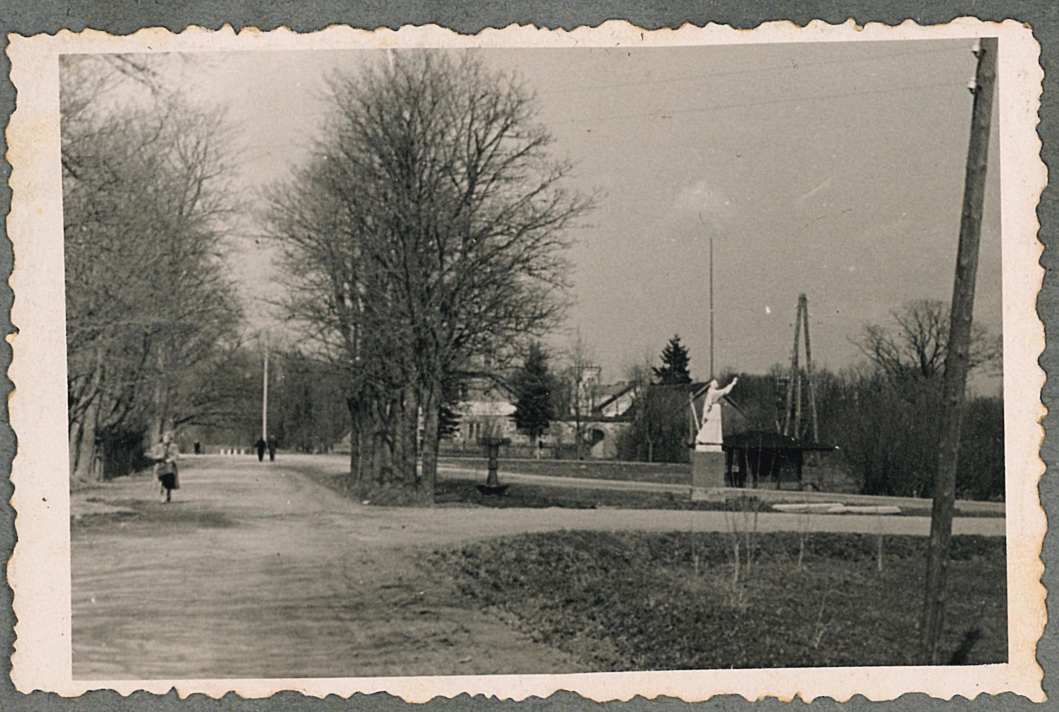 Ceļš uz Lizuma centru. Pretī skulptūrai autobusa pietura.