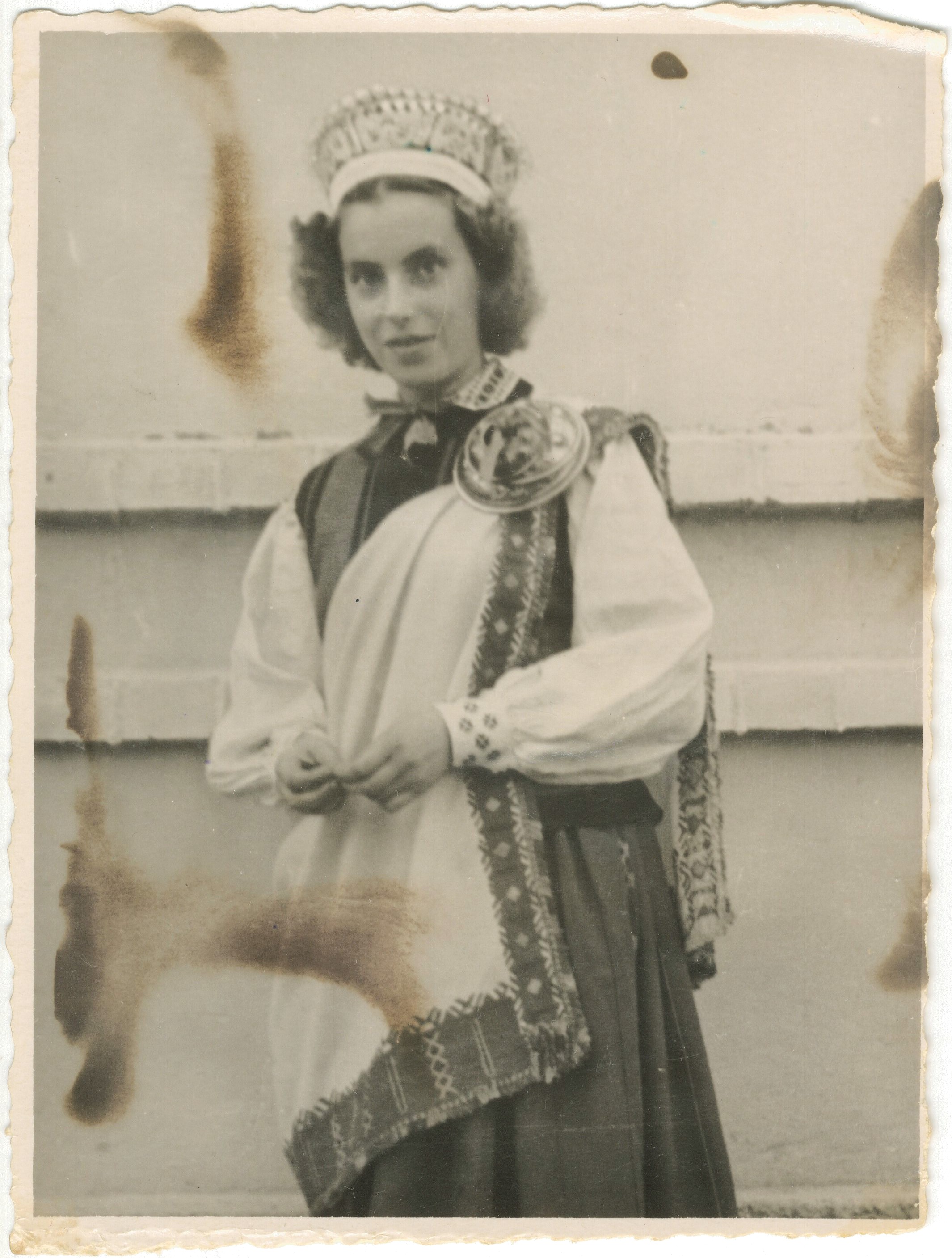 Lidija Vasaraudze (dzim. Beinaroviča) tautas tērpā 1957. gadā. Viņa bija viena no Vispasaules jaunatnes un studentu festivāla (1957, Maskava) dalībniecēm no Latvijas, dejoja festivāla atklāšanas uzvedumā “Ziedi, mūsu jaunība”.