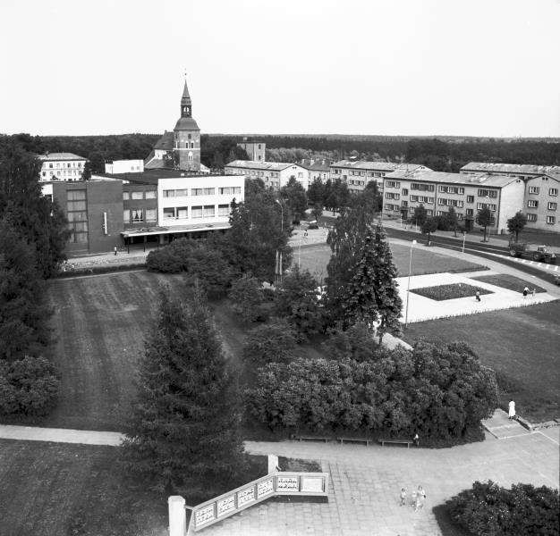 Fotogrāfijas priekšplānā redzams Valmieras centra laukums ar Goda plāksni. Plāksne atradās pilsētas centrā, tajā tika ievietotas Valmieras rajona kolhozu un uzņēmumu labāko darbinieku liela izmēra fotogrāfijas. Aiz laukuma redzams 1965.g. uzceltais patērētāju biedrības universālveikals “Valmiera”, aiz tā pa kreisi redzama viesnīca “Gauja”, vidū Sv. Sīmaņa baznīca, pa labi dzīvojamie nami.