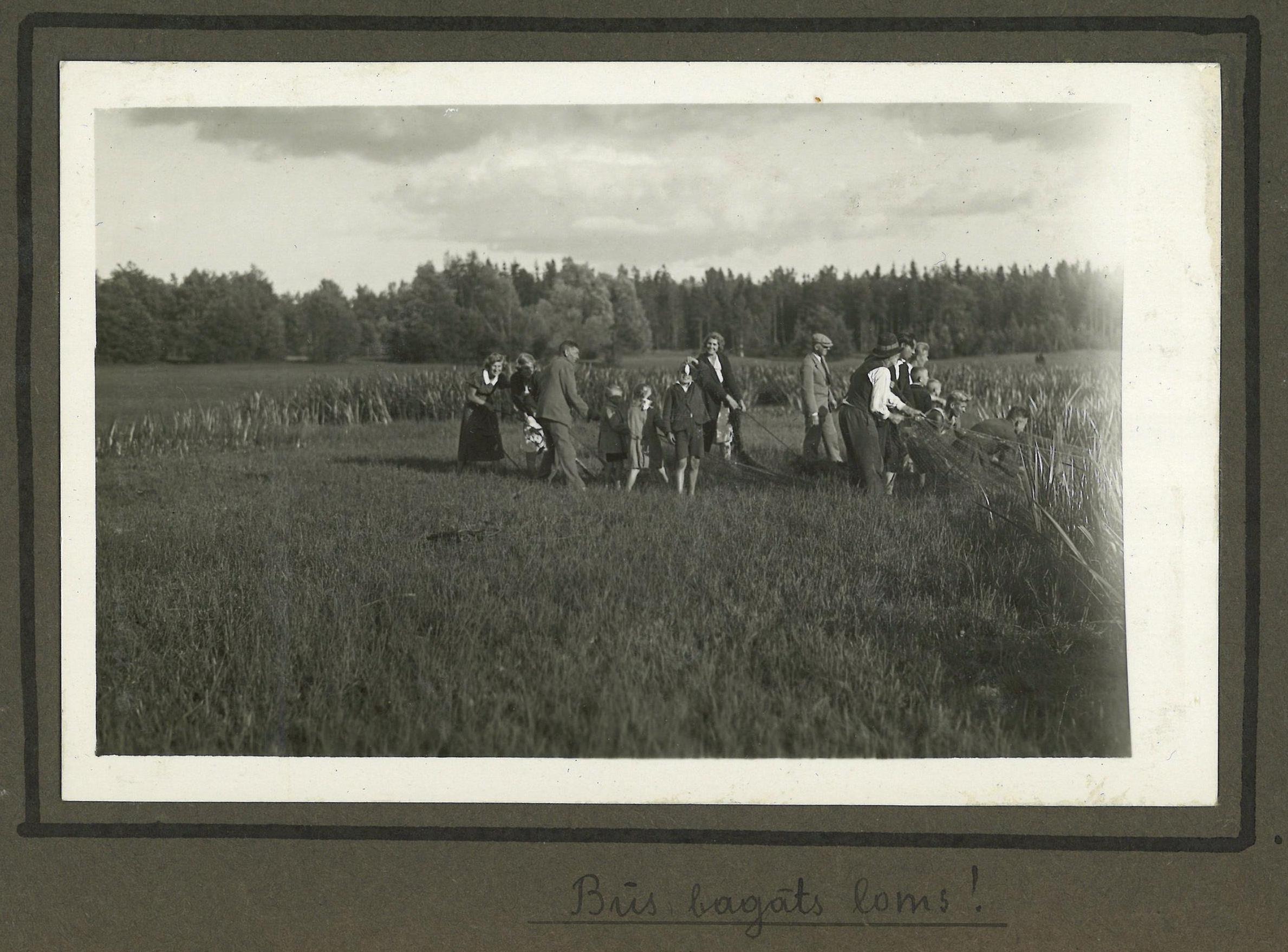 Fotogrāfijā redzama cilvēku grupa, velkot laukā no ūdens zvejas tīklu. Albuma lapā rakstīts: " Jērnēs 1936.g. 8. augustā". Zem fotogrāfijas rakstīts: “Būs bagāts loms!”. Ar krustiņu uz fotogrāfijas atzīmēts Kauguru skolas skolotāja un direktora Dāvida Zaķa bērns Lidis.