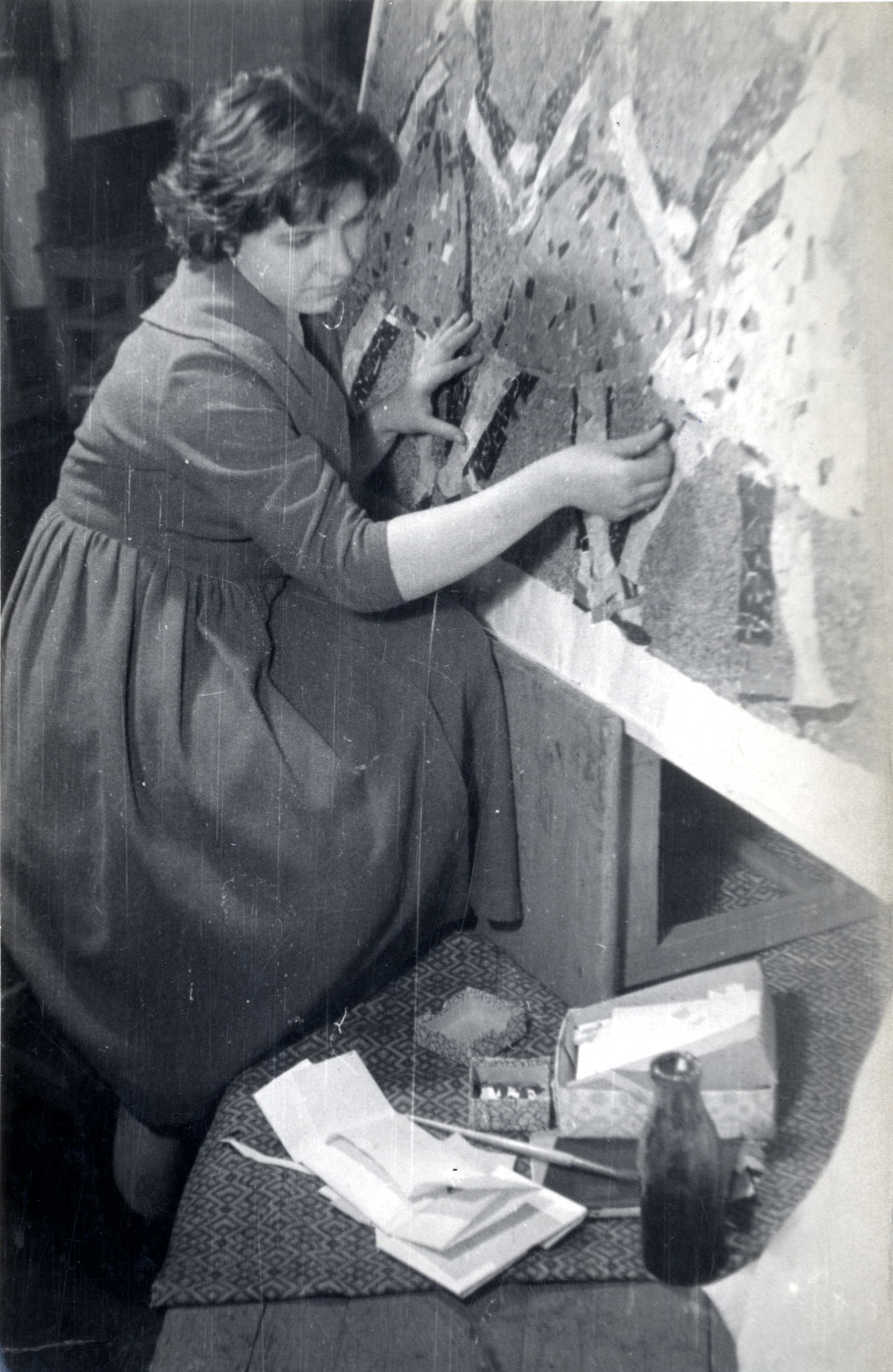 Keramikas studente Izabella Krolle studiju procesā Latvijas Mākslas akadēmijā ( Latvijas PSR Valsts Mākslas akadēmijā) 20. gadsimta 60. gadu sākumā.