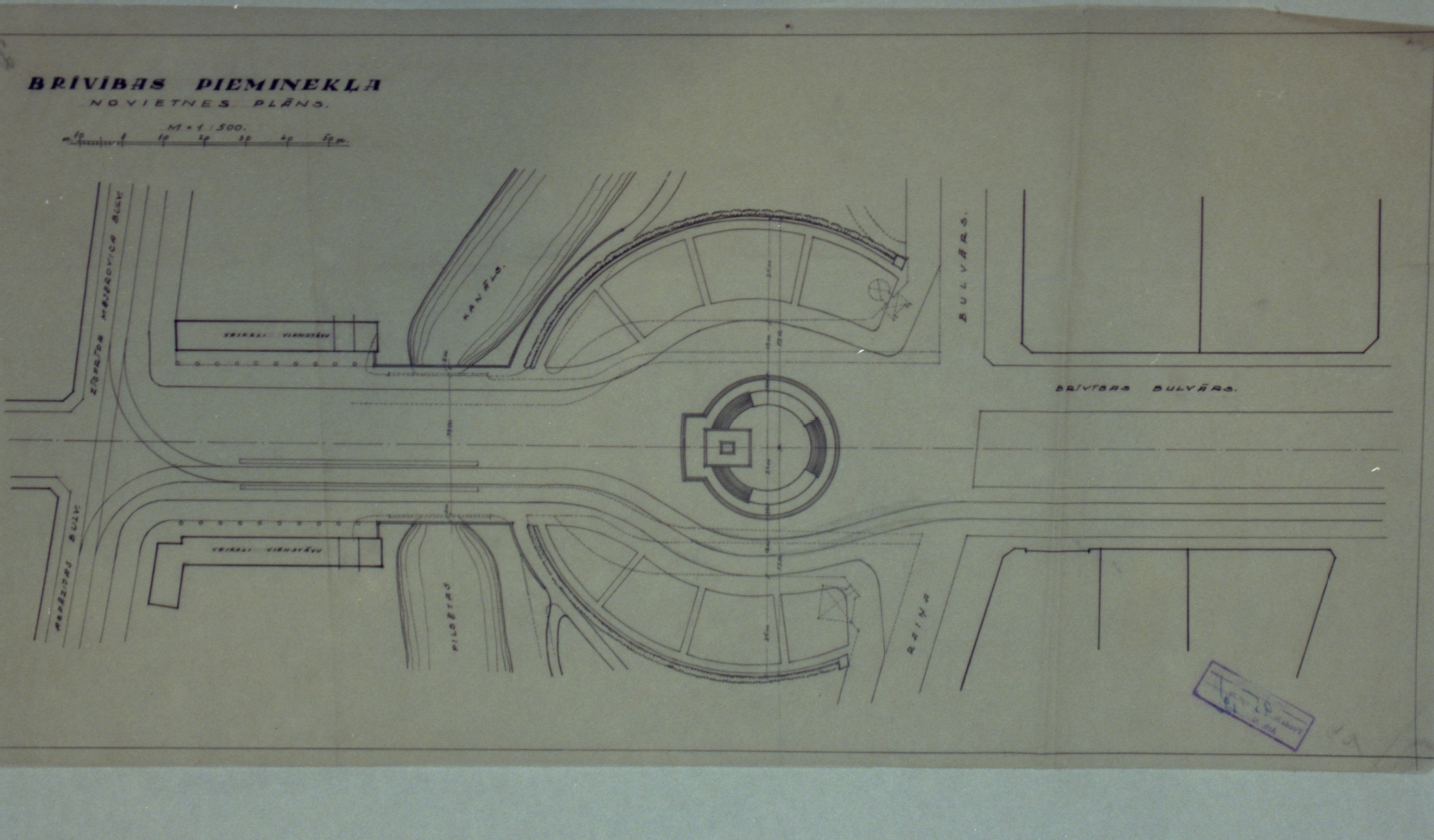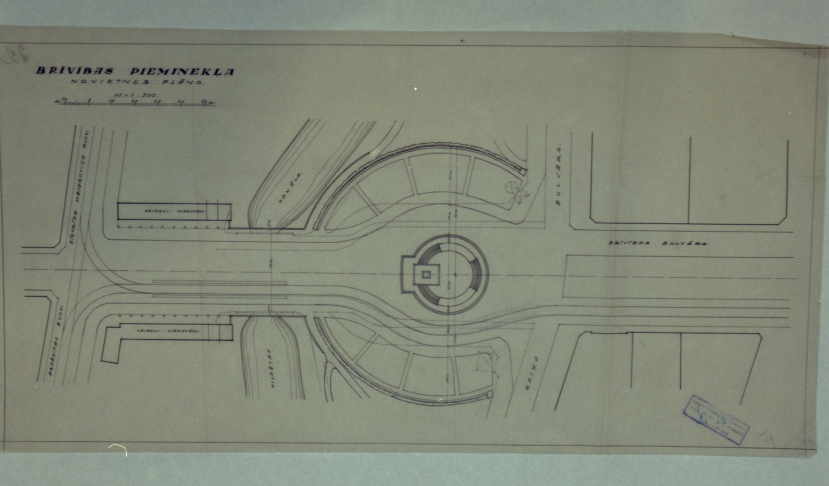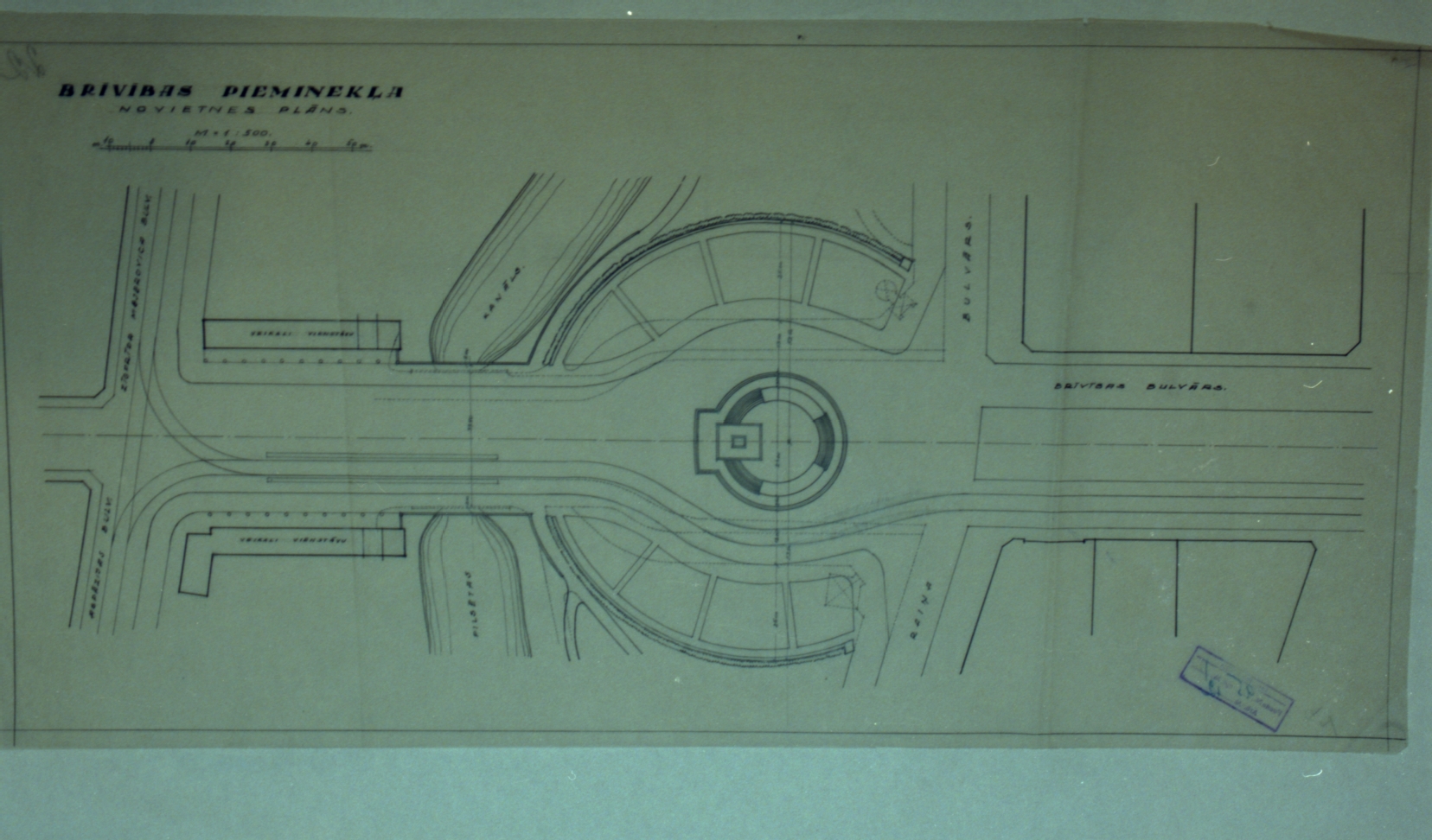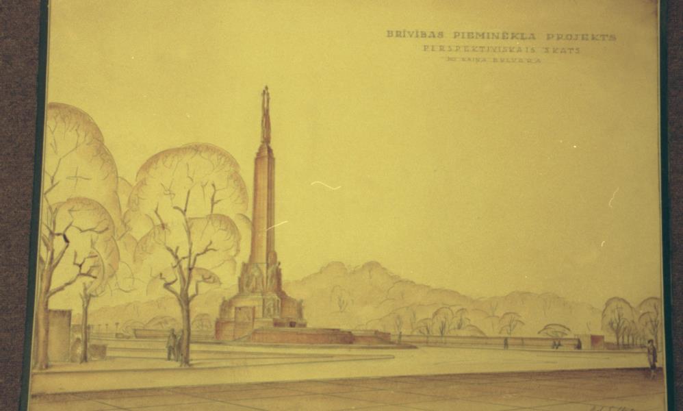 Valsts arhīvā - Brīvības pieminekļa izbūves skices.