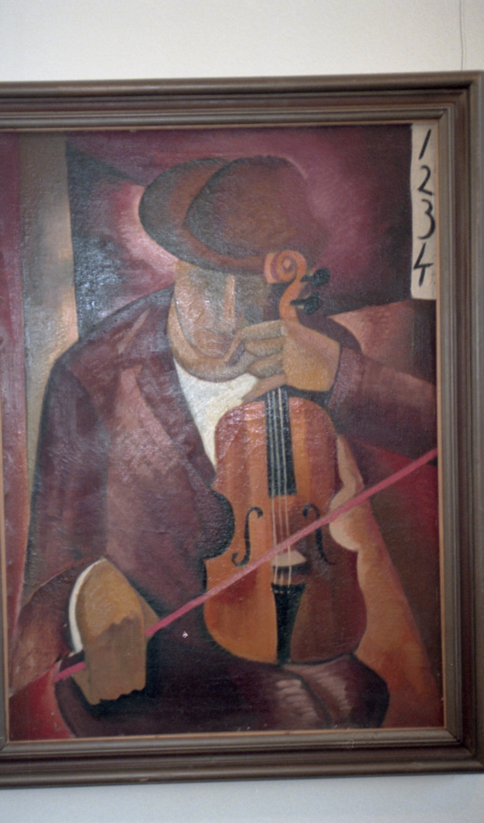 Aprūpes centrā Ventspils ielā. Reprodukcijas - Niklāvs Strunke «Cilvēks, kas ieiet istabā», Romāns Suta «Klusā daba», Jānis Liepiņš «Vijolnieks», Jēkabs Kazāks «Meitene ar cepuri», Rūdolfs Liberts «Ziema pilsētas nomalē».