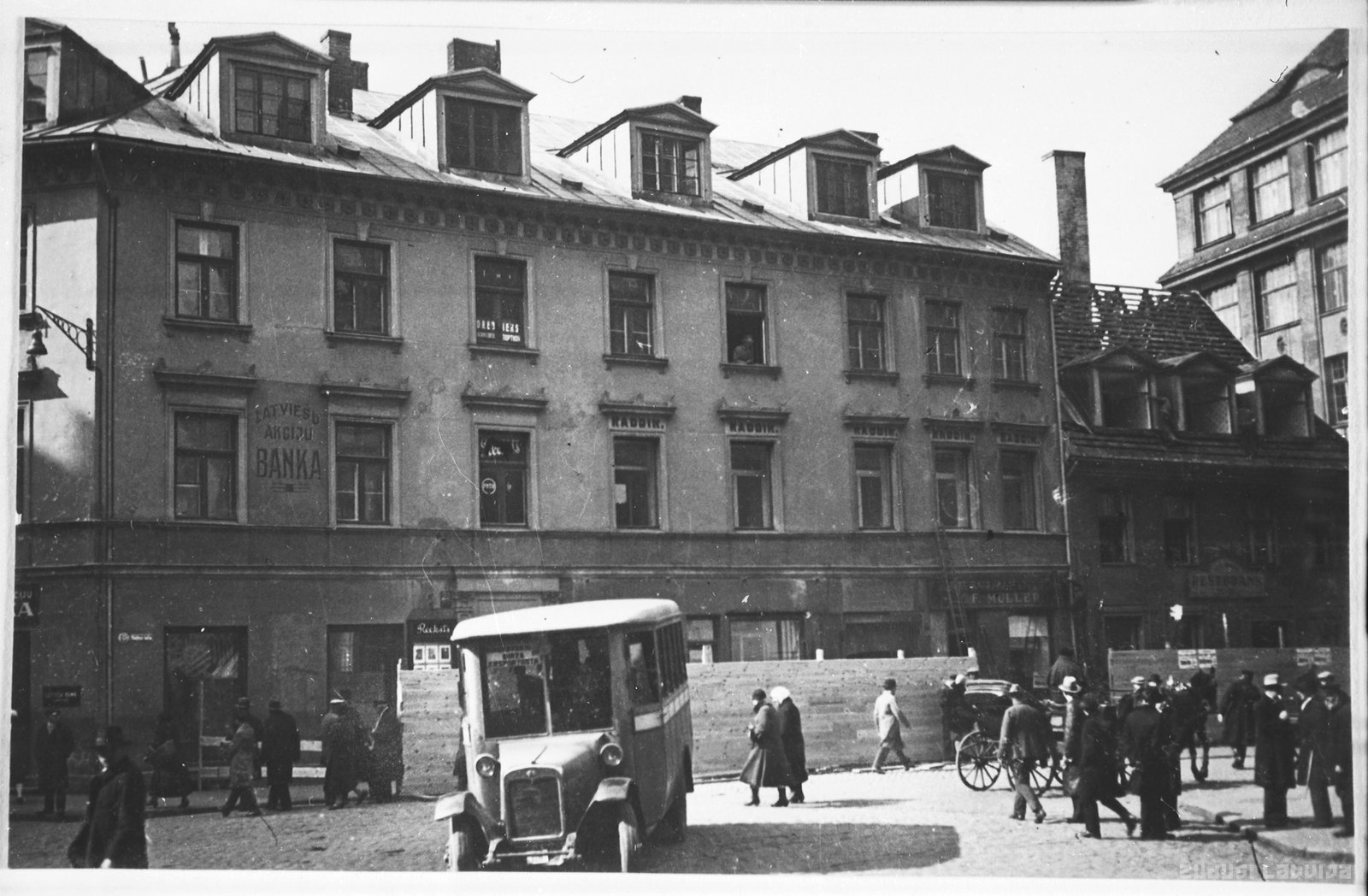 Latviešu akciju banka dibināta 1922. gada 1. martā. Attēlā bankas ēka Kaļķu ielā 3-5 pirms nojaukšanas 1930. gadā