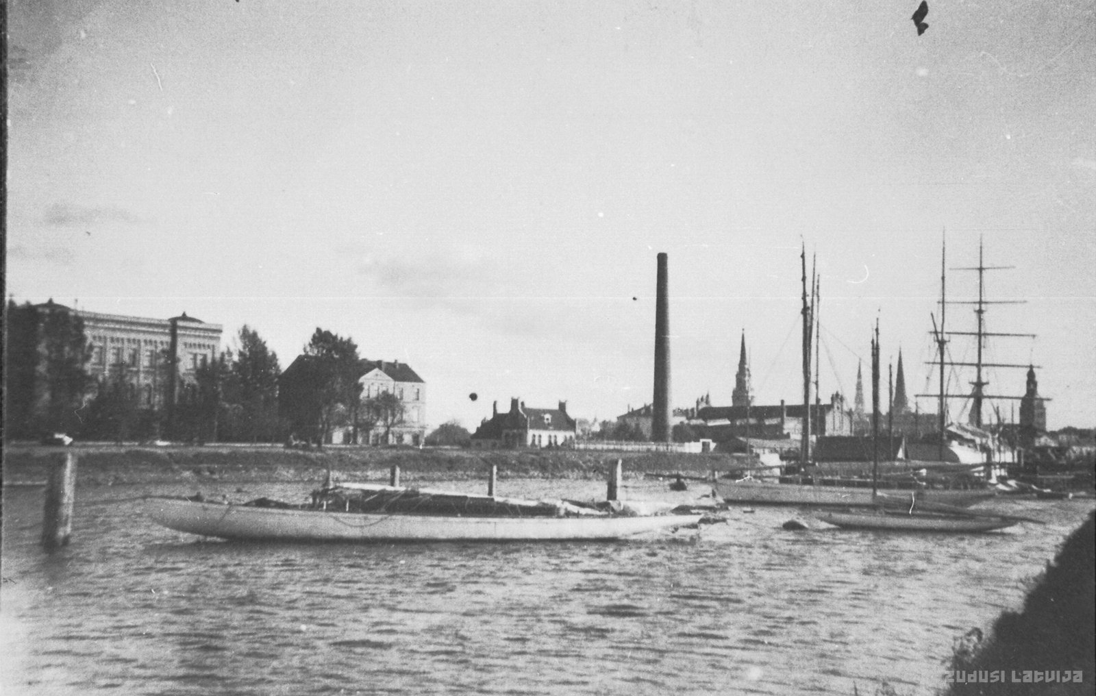 Skats uz Daugavu no Citadeles. Redzams arī pēc arhitekta Heinriha Šēla (1829-1909) projekta no 1877. līdz 1879. gadam celtais anatomikums (līdz 1920. gadam Rīgas Pareizticīgo garīgā semināra telpas) Kronvalda bulvārī 9 un laivas. Heinrihs Šēls. Rīgas Pareizticīgo garīgais seminārs