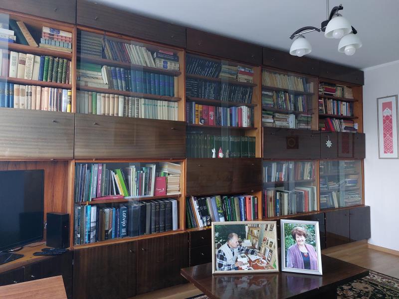 Mani vecāki Romualds un Rūta Koluži bibliotēku sāka veidot uzreiz pēc kopdzīves sākuma 1958. gadā. Mamma bija latviešu valodas skolotāja, tētis – meliorators. 70. gadu beigās tētis izplānoja grāmatskapi, sagādāja materiālus un sastellēja pa visu istabas sienu. Atceros, viņš pārfotografēja no grāmatām literātu portretus, “fotolaboratorijā” (virtuvē) attēlus palielināja, tad uzlīmēja uz koka rāmjiem, lai varētu tos pielikt skolā latviešu valodas kabinetā pie sienas. Vēlāk mamma strādāja par mācību metodiķi, bija arī grāmatu redaktore. Jau sirmā vecumā vecāki aizrautīgi iesaistījās Grāmatu draugu ķēdē, palīdzot grāmatām nokļūt jaunajā Gaismas pilī. Grāmatas mūsu ģimenē ir būtiska māju sajūtas daļa; ar brāli nevaram iedomāties mājvietu bez grāmatām, un par to sakām paldies vecākiem. Meita Ieva