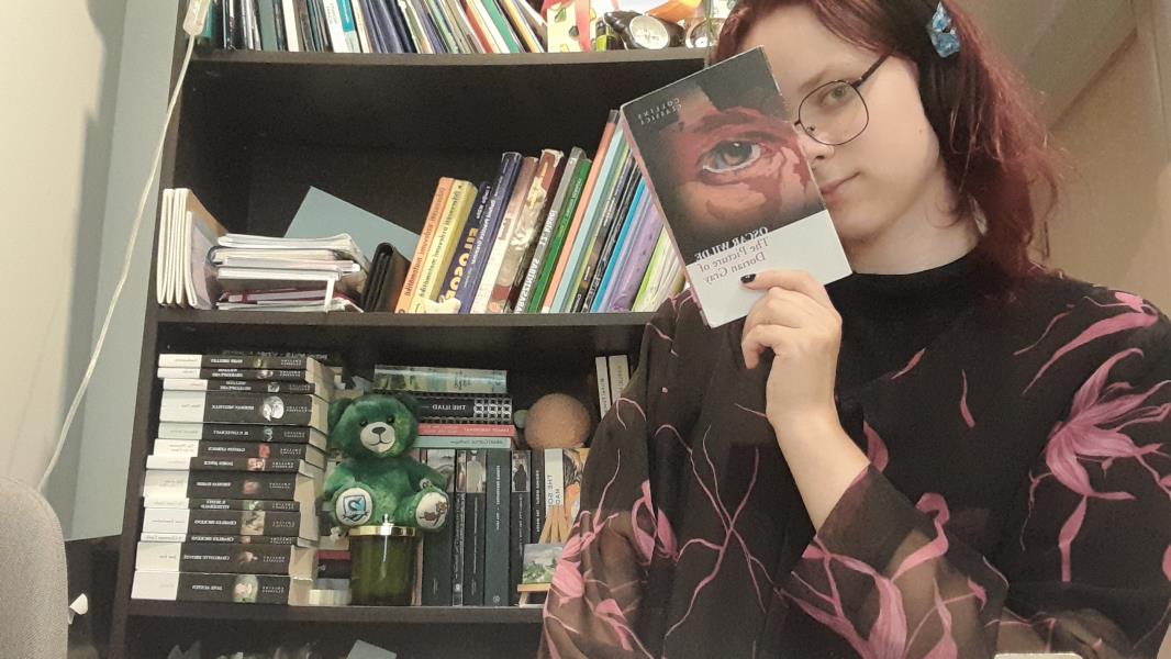 Aiz ēdamgalda no grīdas līdz griestiem slejas tumšais un staltais grāmatplaukts, bet tas nav biedējošs. Apkārt nolikto ābolu kanēļa sveču smarža virmo pa gaisu un ar savām grāmatām jūtos patiesi mierīga. Kad pārvācāmies ar ģimeni uz Rīgu tika iegādāts jauns grāmatplaukts, kas laika gaitā ir piedzīvojis gan angļu- latviešu vārdnīcu smagumu, gan daiļliteratūras dižgaru vārdu vieglumu. Uz vairākiem plauktiņiem noliktas mantiņas un suvenīri no ārvalstīm, kuri raisa nostaļģiju. Roka stiepjas pēc mīļotā OSkara Vailda grāmatām. Vai tā būtu “Doriana Greja ģīmetne”, vai viņa lugas? Šis autors ir man līdzās kopš pamatskolas gadiem. Grāmatas, kas pabijušas laukos, Sēlijā, un nokļuvušas Latvijas galvaspilsētā, vai arī tikko nopirktas literārās pērlesmanā grāmatplauktā gaida norunāto tikšanos ar mani.