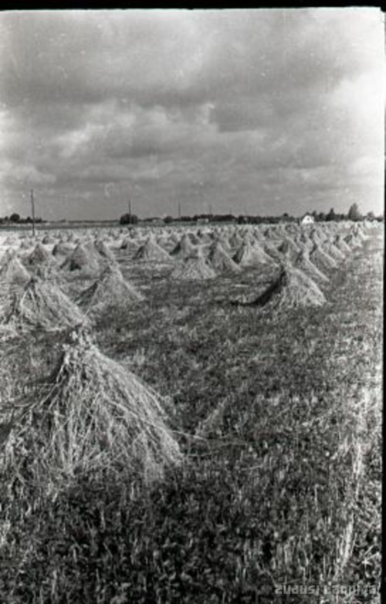 Rudzu statiņi kolhoza laukā Iecavas apkārtnē