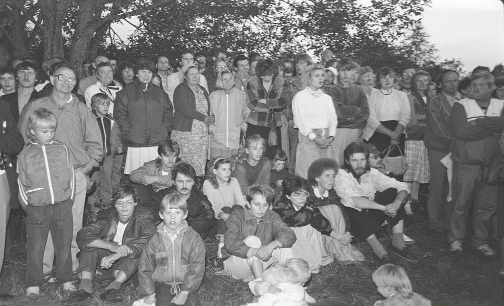 Fotogrāfijā redzami mītiņa "Ļaunuma iznīcināšana" dalībnieki, t.sk. mazsalacieši. Pirmajā rindā otrā no labās puses sēž Mazsalacas vidusskolas skolotāja Anita Stabiņa, trešā Anta Ķirse, ceturtā Ilona Nagle. Mītiņš, kuru organizēja Latvijas TF un Igaunijas TF, notika 1989. gada 23. augustā plkst. 21.00 Ķoņu pagasta Unguriņos pie Igaunijas robežas.
