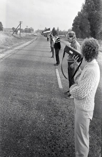 Fotogrāfijā redzami mazsalacieši - Mazsalacas MRS pārstāvji, kuri piedalās akcijā "Baltijas ceļš" 1989. gada 23. augustā. Posms, kurā stāvēja akcijas dalībnieki - mazsalacieši, bija autoceļa Rūjiena–Valmiera 10. kilometrs, pie ceļa pagrieziena uz Oleru muižu aiz pieturas "Grantiņi" Valmieras virzienā. Pirmā no labās puses Agrita Šmite, otrais Andis Kļaviņš, trešais Ilmārs Šmits ar dēlu Aigaru.