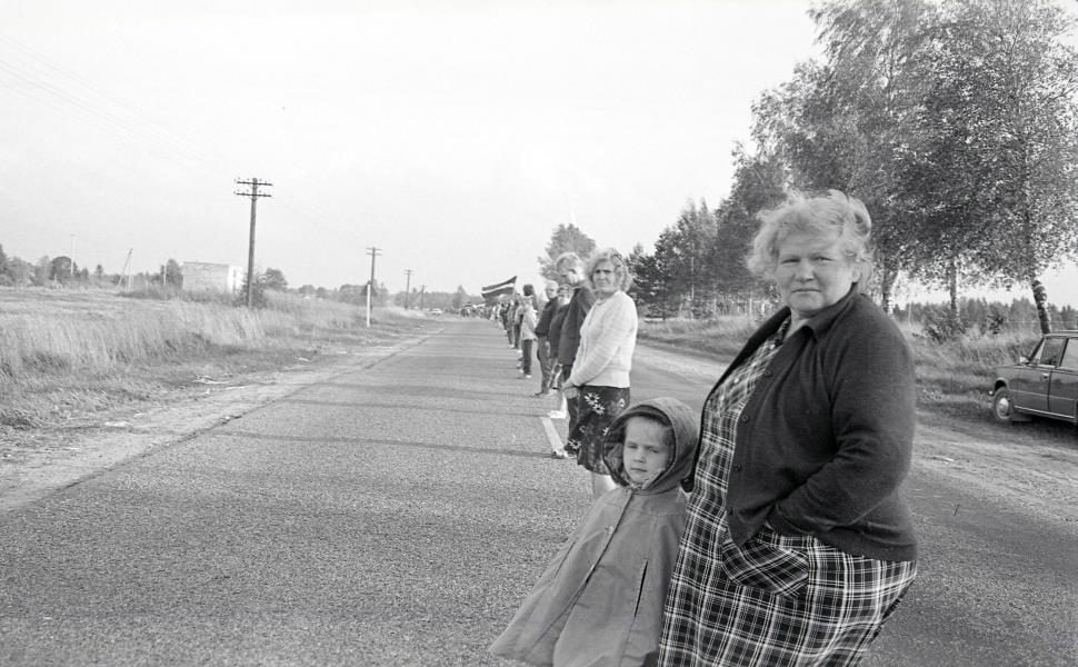 Fotogrāfijā redzami mazsalacieši - Mazsalacas MRS pārstāvji, kuri piedalās akcijā "Baltijas ceļš" 1989. gada 23. augustā. Posms, kurā stāvēja akcijas dalībnieki - mazsalacieši, bija autoceļa Rūjiena–Valmiera 10. kilometrs, pie ceļa pagrieziena uz Oleru muižu aiz pieturas "Grantiņi" Valmieras virzienā. Pirmā no labās Maiga Sebre ar mazmeitu, otrā Aina Jurka.
