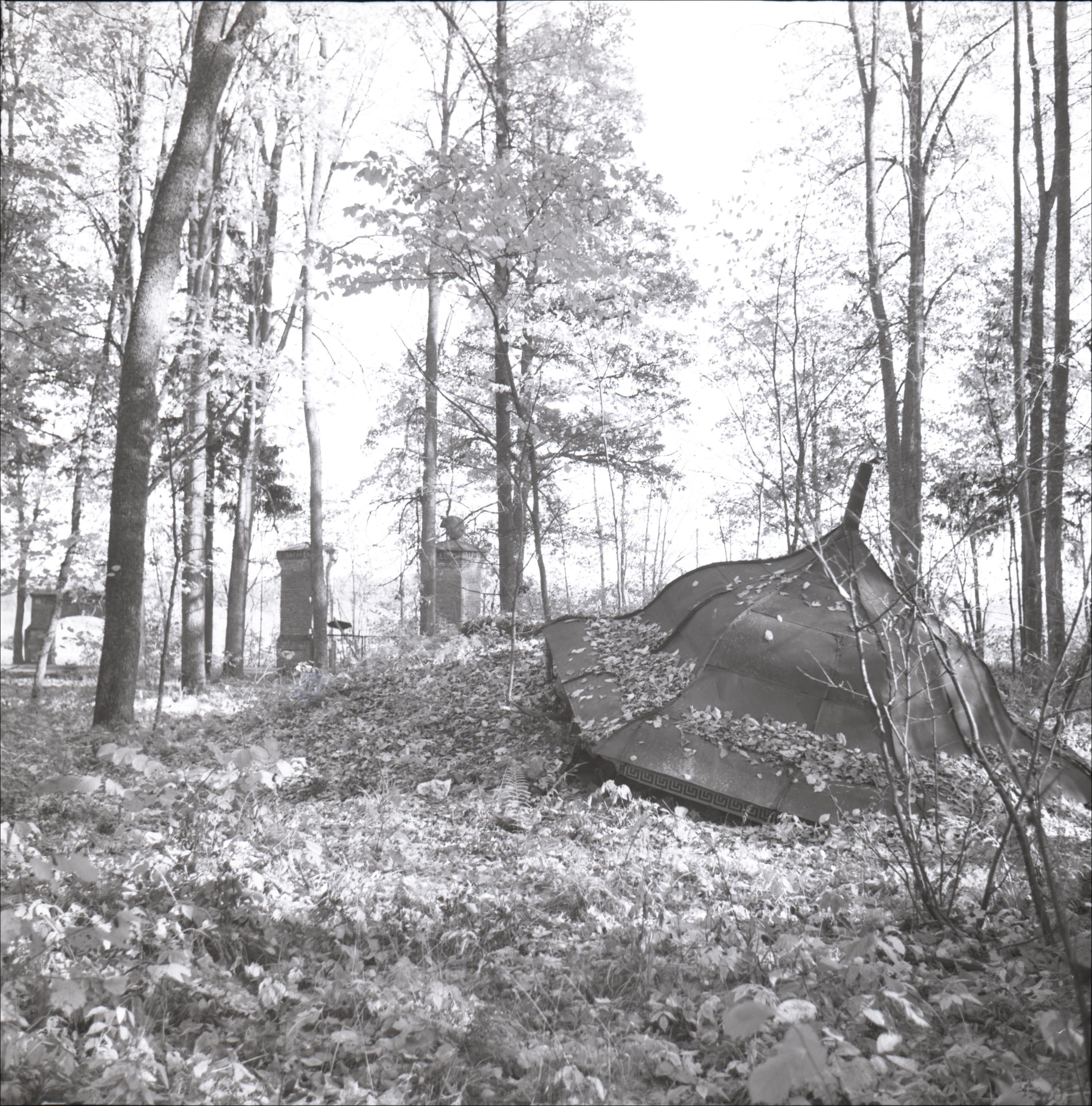 Braslavas muižas apbūve: Parka paviljona drupas, skārda jumts, vārti