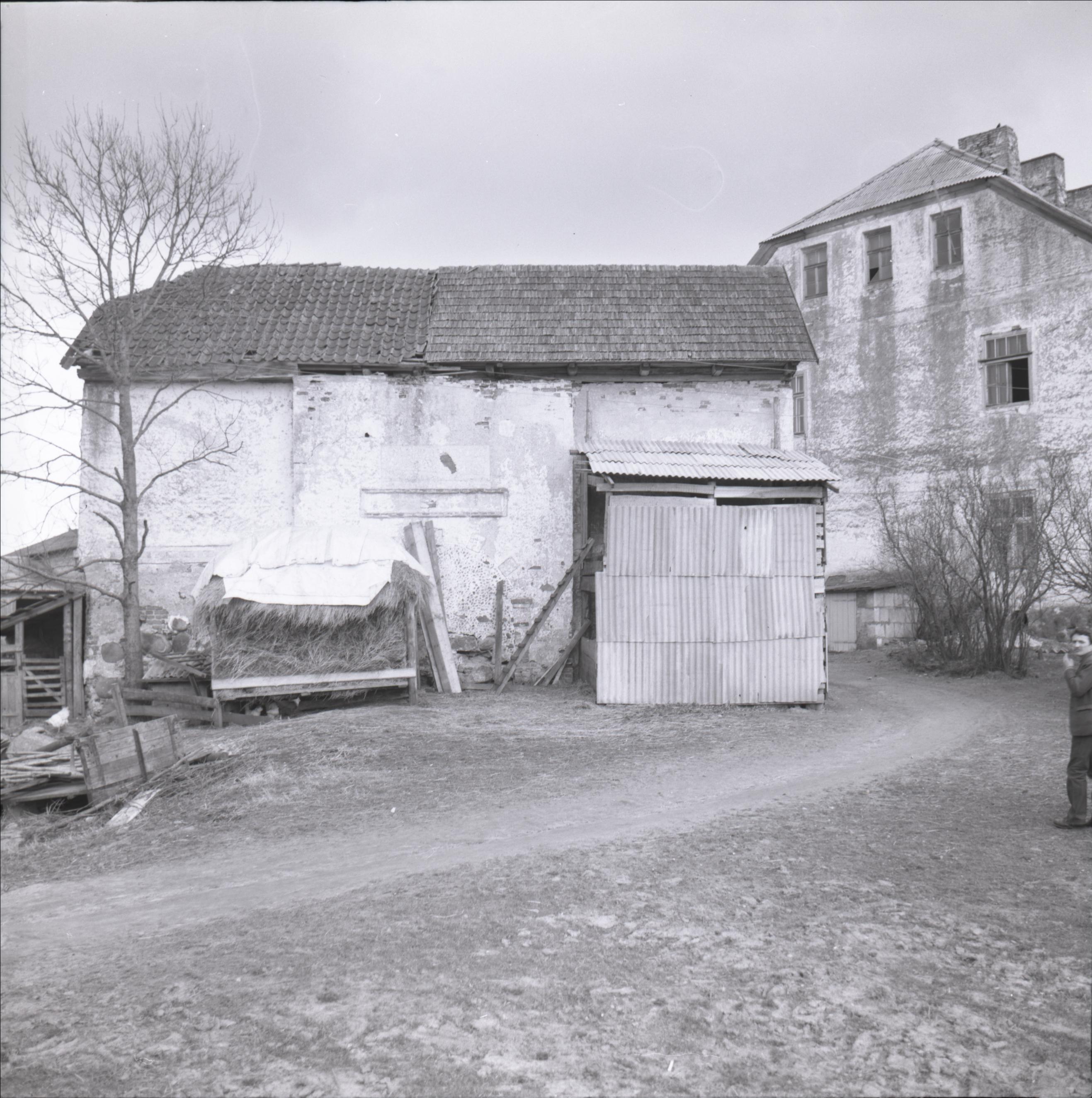 Bramberģes muižas apbūve ar parku: Bijušie vārti, fonā dzīvojamā ēkā