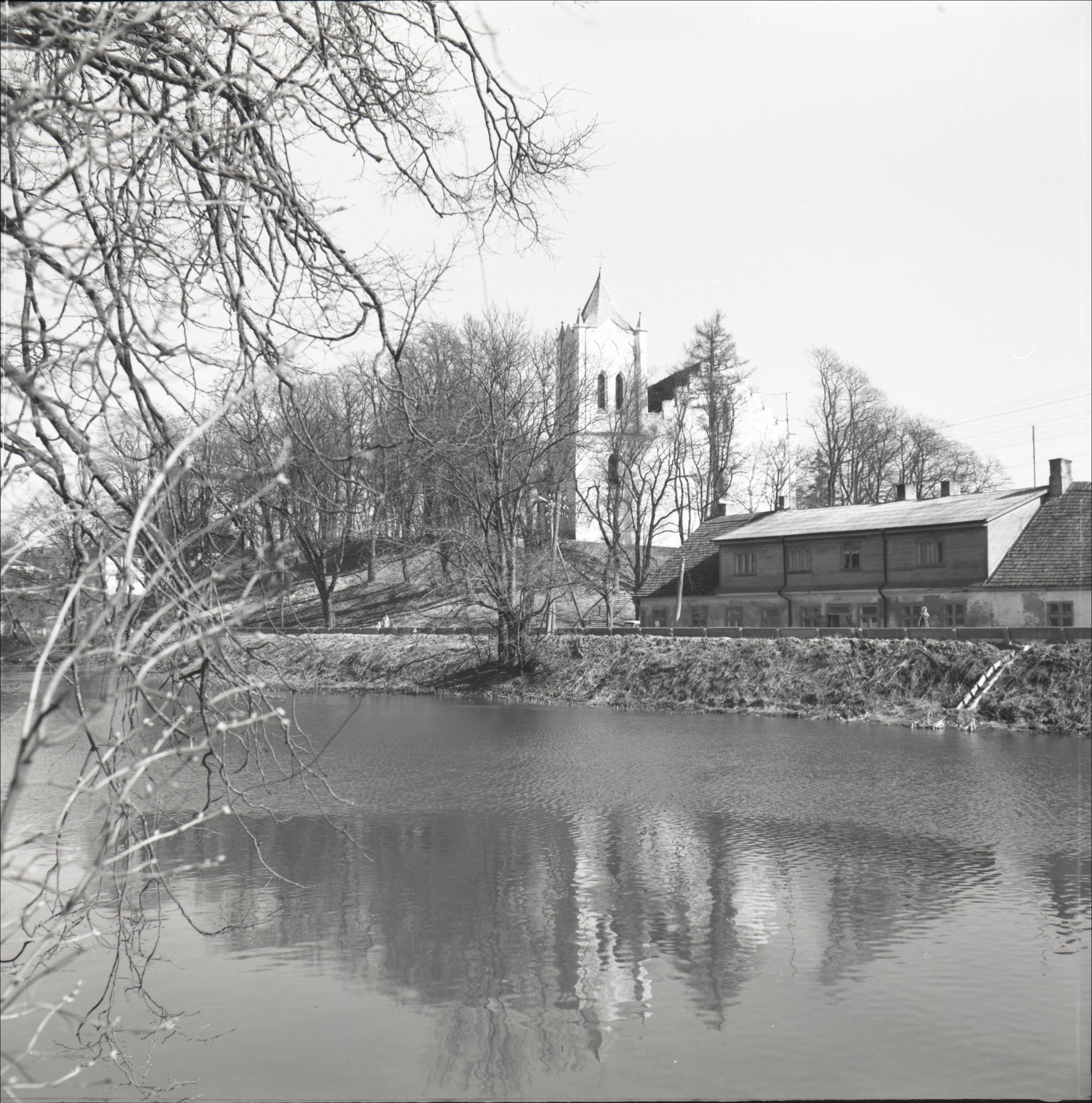 Aizputes Sv.Jāņa luterāņu baznīca: Skats pāri dzirnavu dīķim