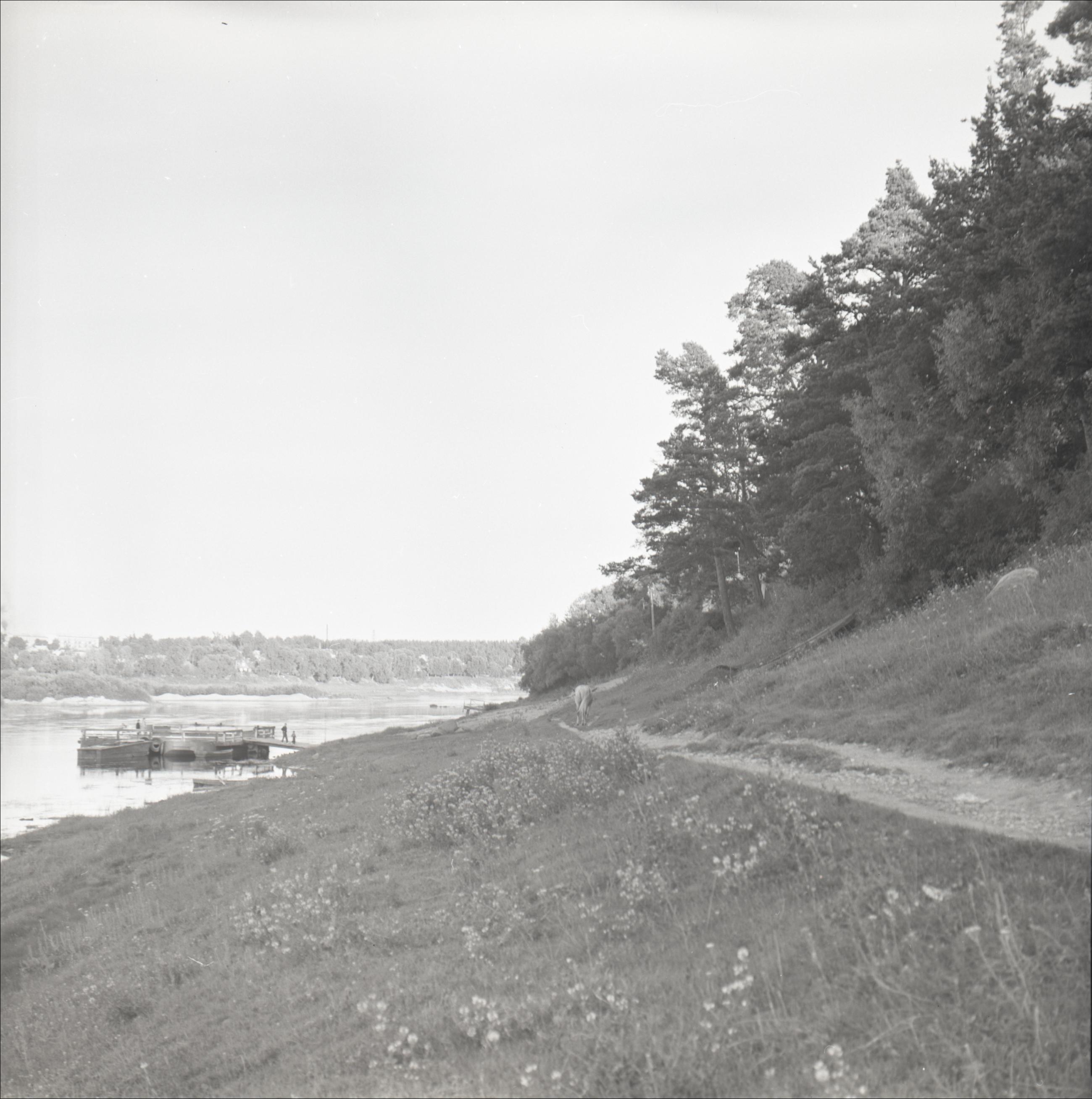 Krāslava: Panorāma pāri Daugavai, laivu piestātne