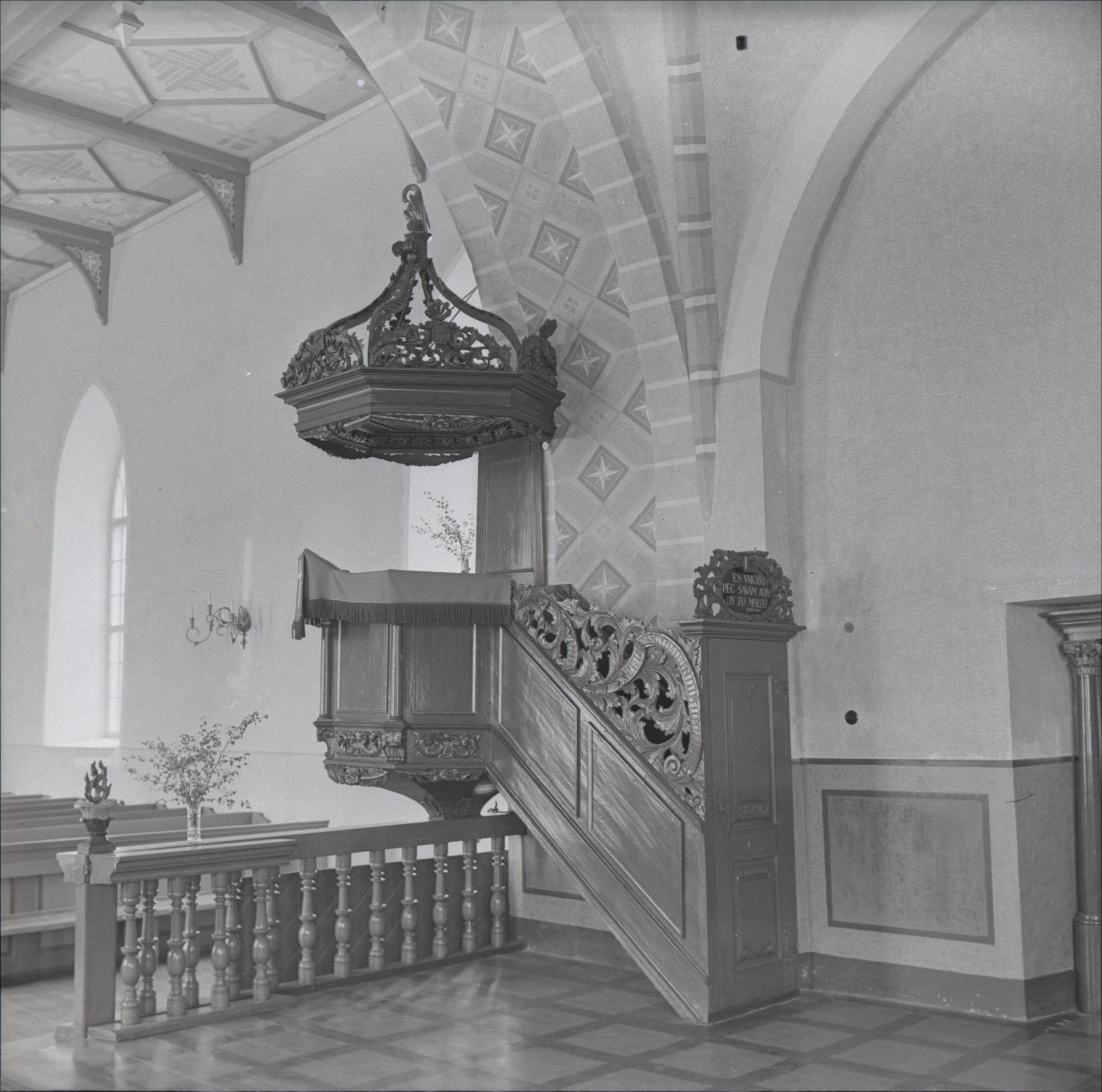 Trikātas baznīca: Kancele ar uzeju, atdalošā sētiņa, soli, velve
