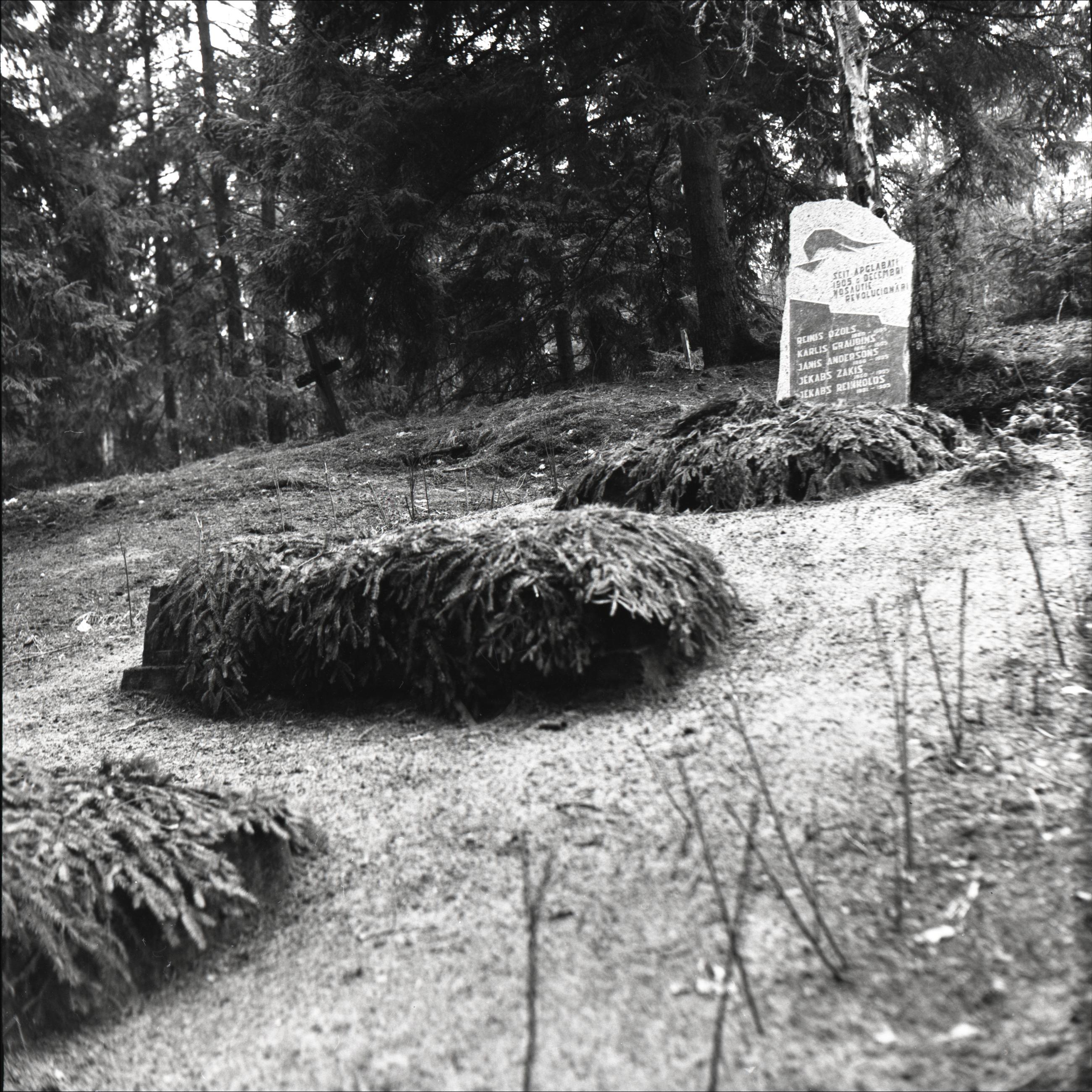 1905. gada revolūcijā kritušo kapi: 3 kopiņas, kapa piemineklis. Reinis Ozols, Kārlis Graudiņš, Jānis Andersons, Jēkabs Zaķis, Jēkabs Reinholds