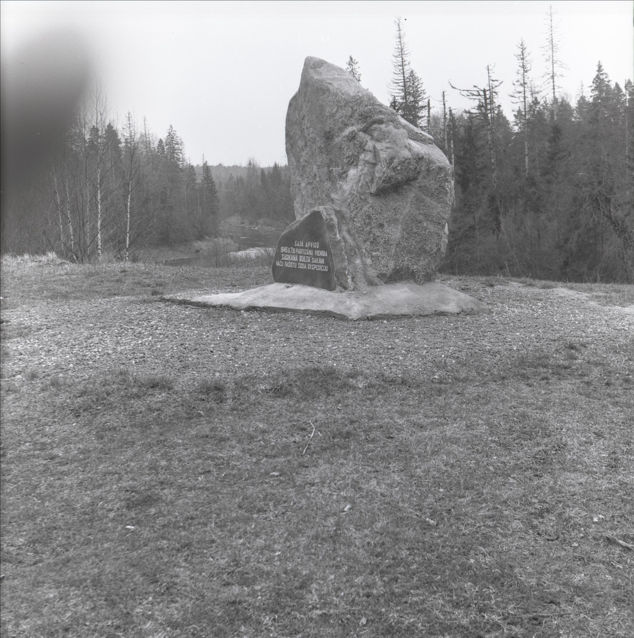 Piemiņas akmens "Sarkanās bultas" partizānu kaujas vietā: Akmens, upe