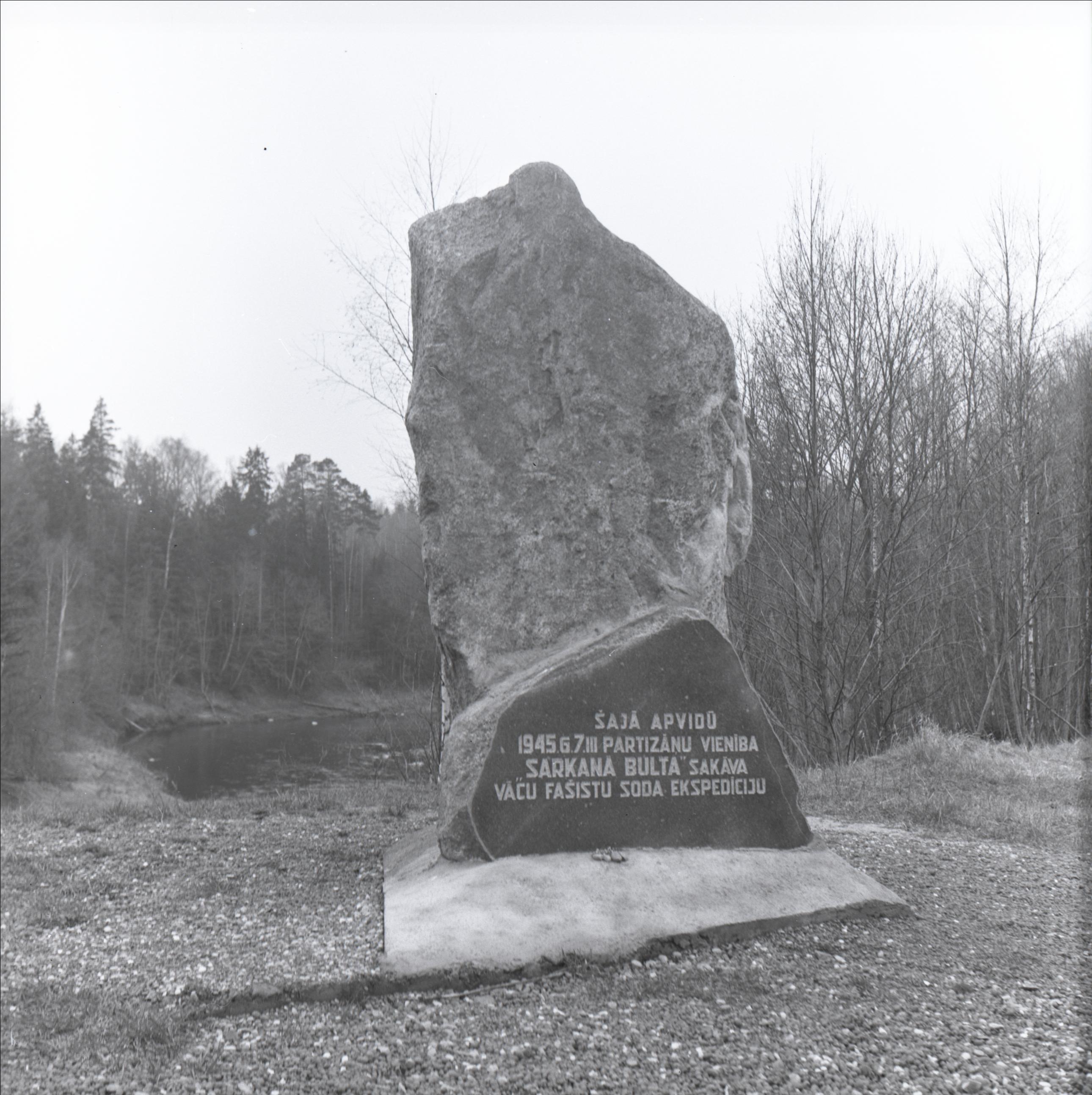 Piemiņas akmens "Sarkanās bultas" partizānu kaujas vietā: Akmens, upe