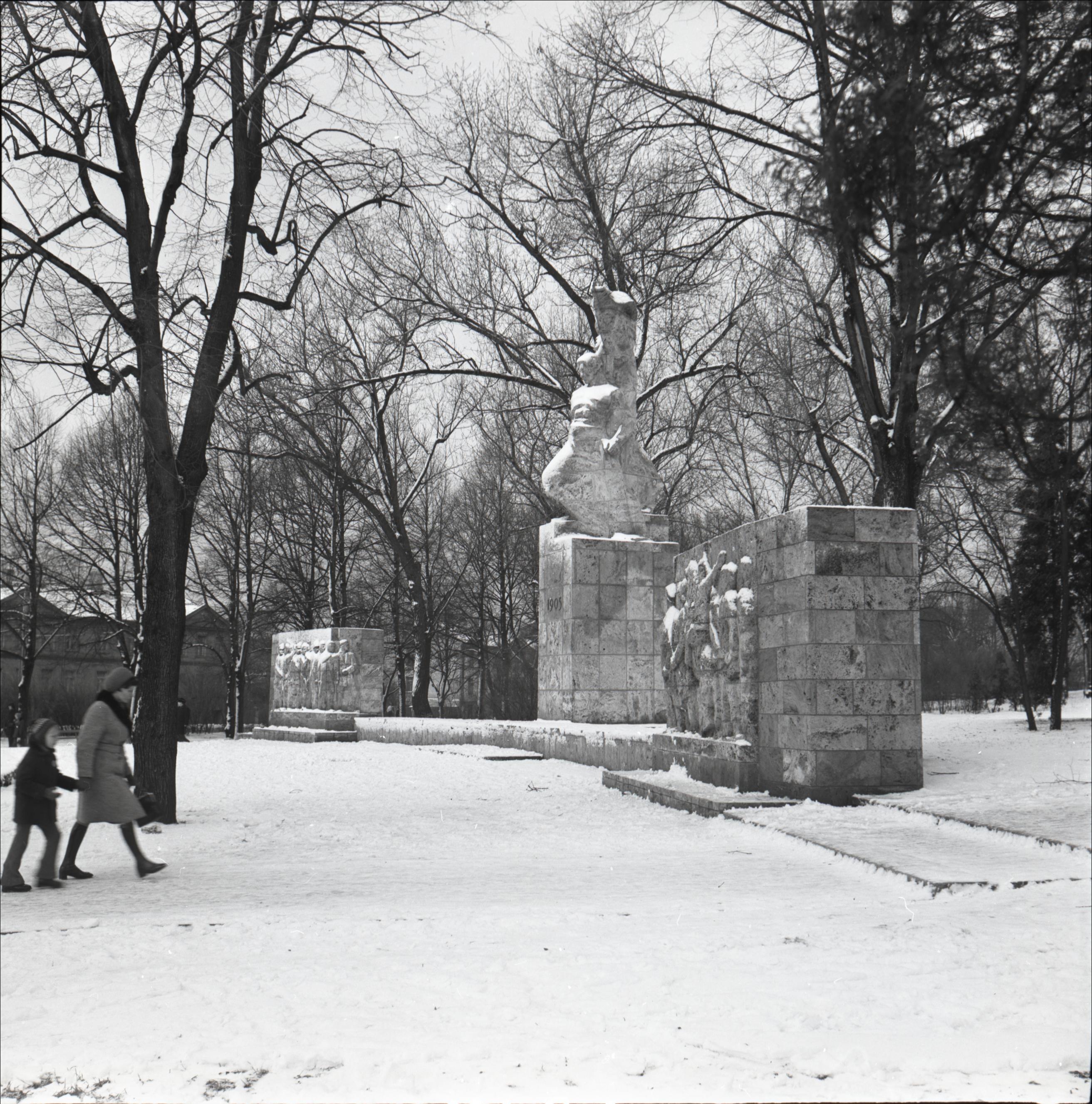 Grīziņkalna piemineklis 1905. gada revolūcijai: Grīziņkalna parks, piemineklis, skats no kreisās puses, cilvēki