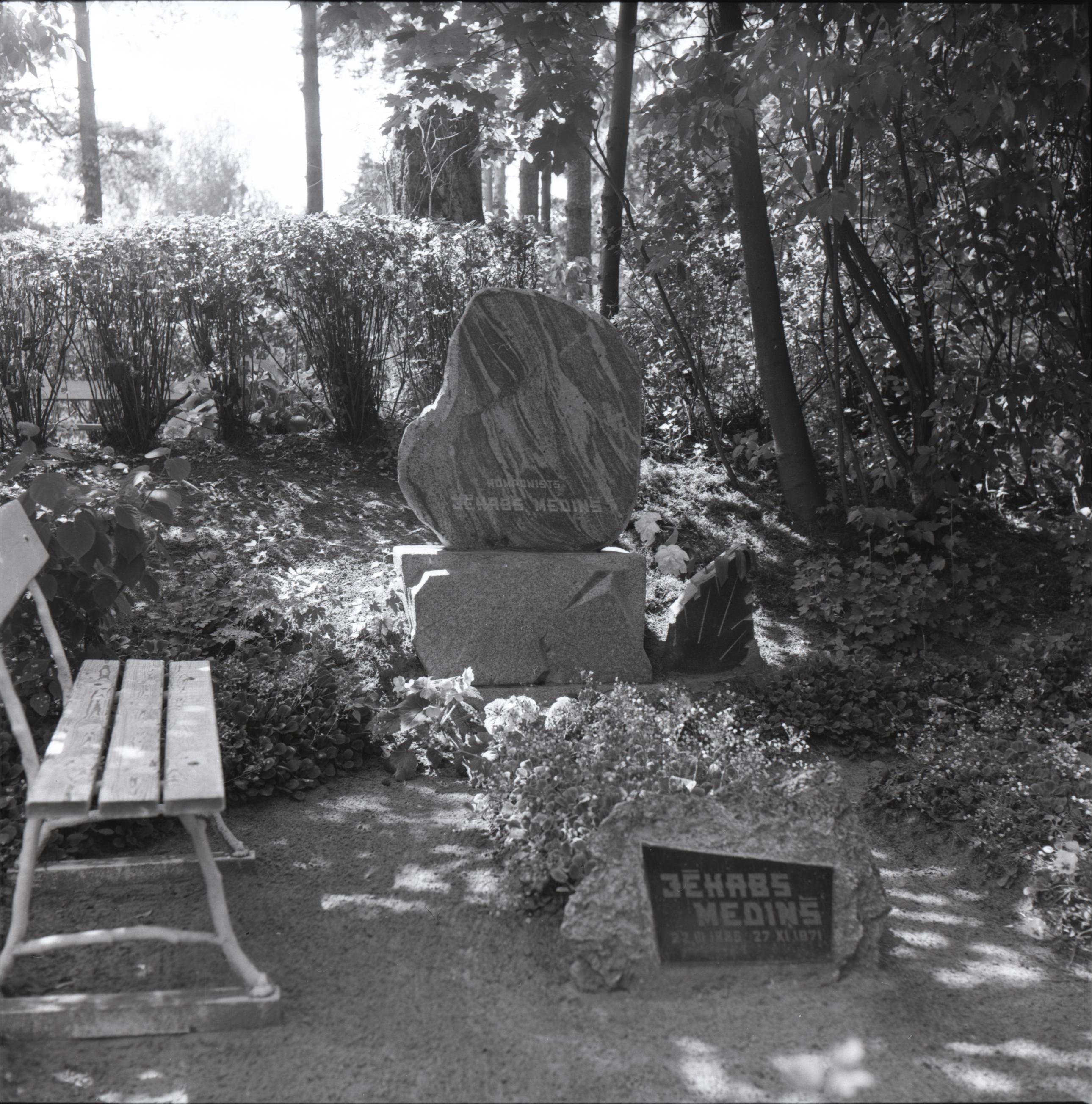 I Meža kapi: J. Mediņa kapa piemineklis, plāksne
