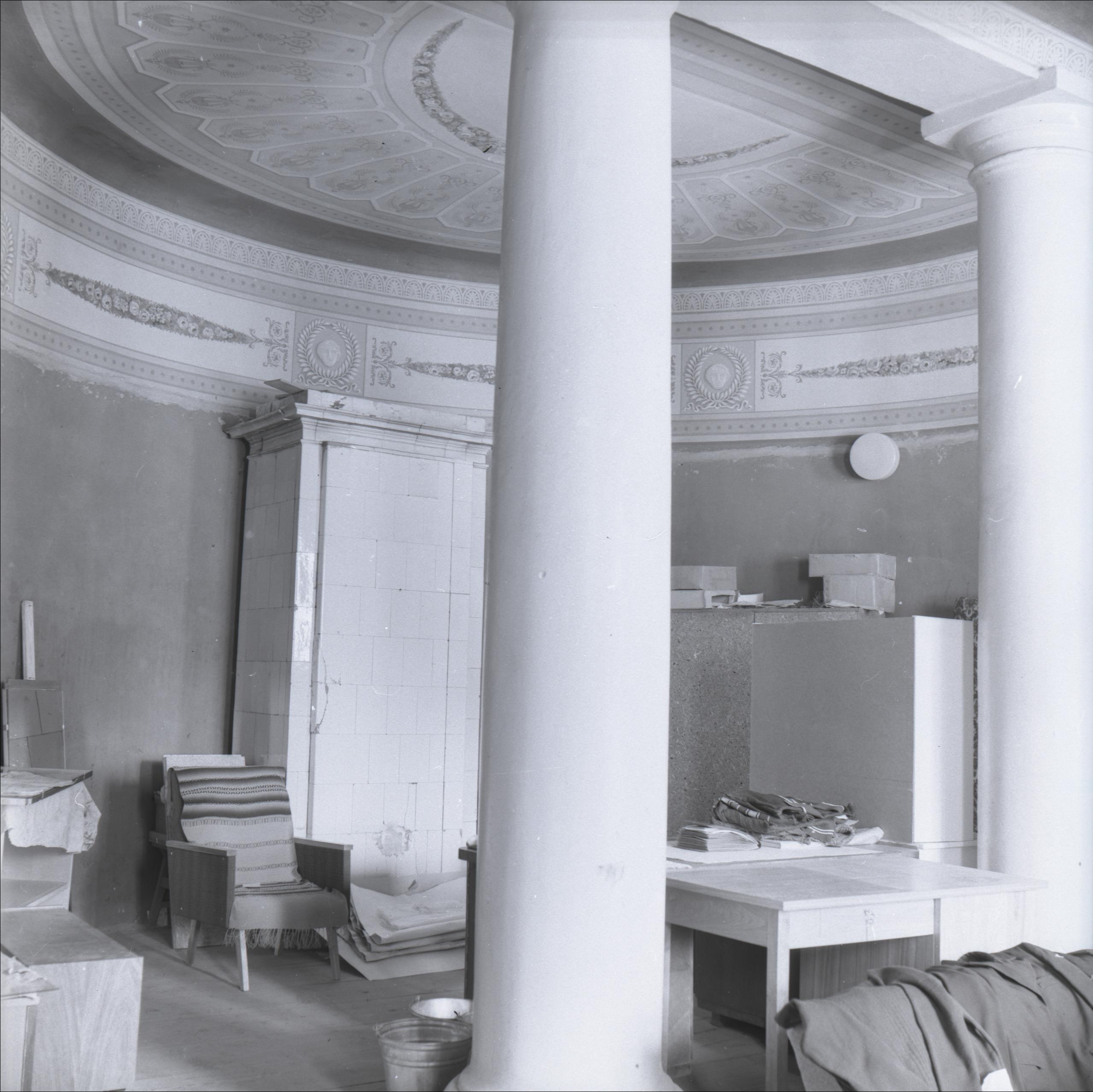 Nurmuižas apbūve: Kungu māja, griestu, sienu gleznojumi, kolonnas, krāsns