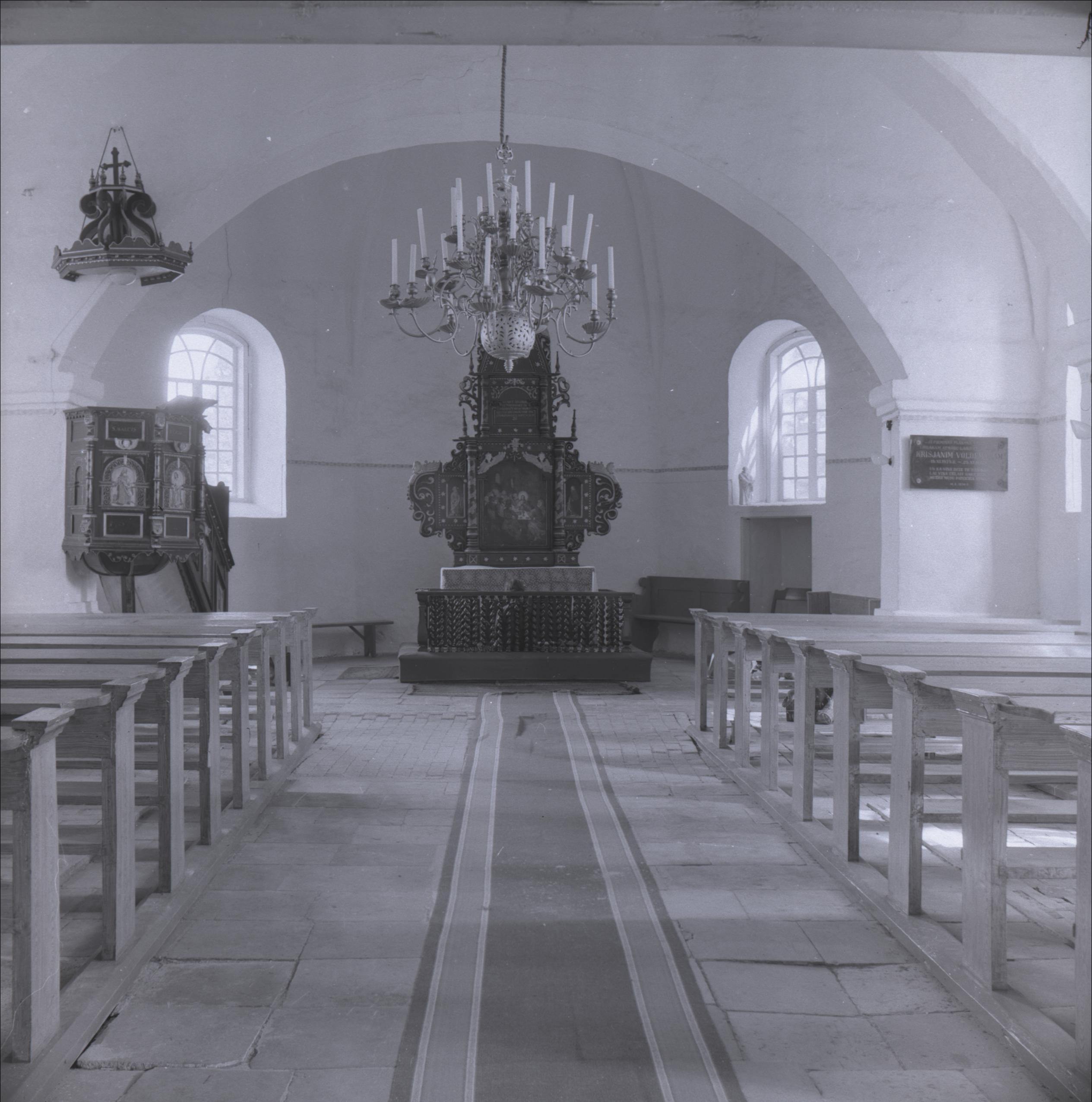 Valdemārpils luterāņu baznīca: Altāris, altārglezna, griestu lustra, kancele