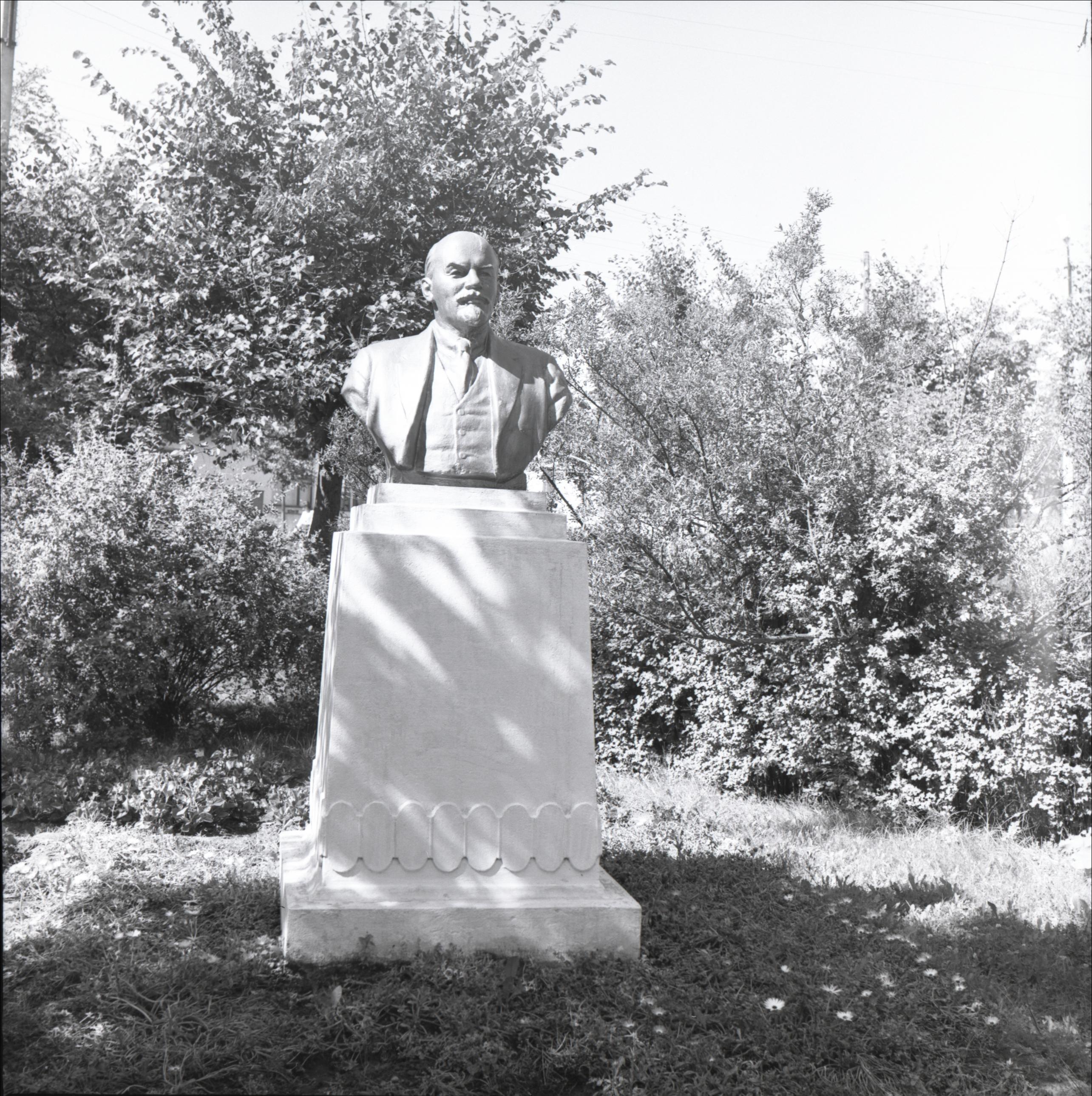 Ļeņina biste Ilūkstē: Ļenina biste, krūmi, tuvplāns