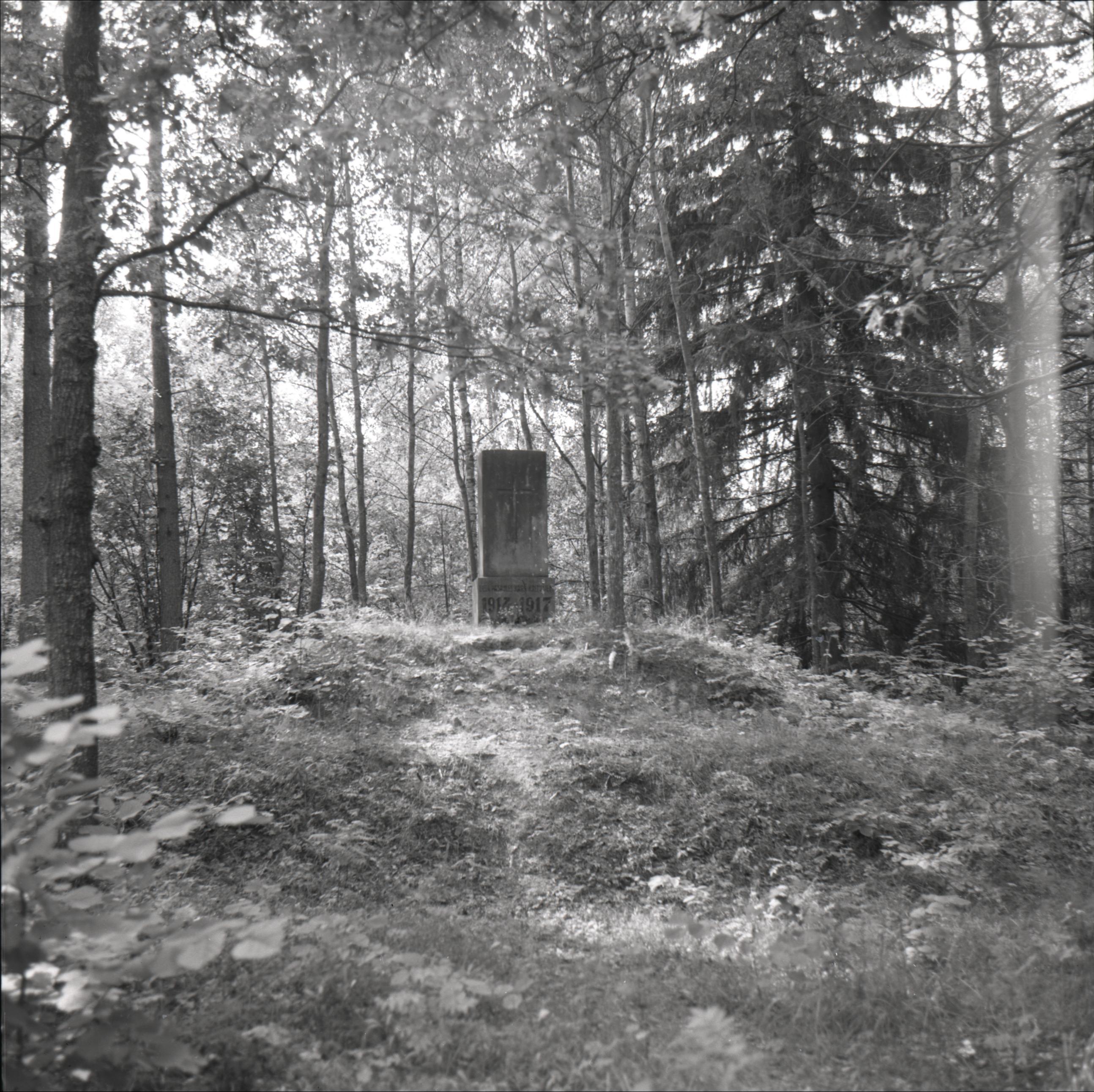 I pasaules karā kritušo brāļu kapi pie Krivinišķu sādžas: Piemineklis ar krustu, mežs