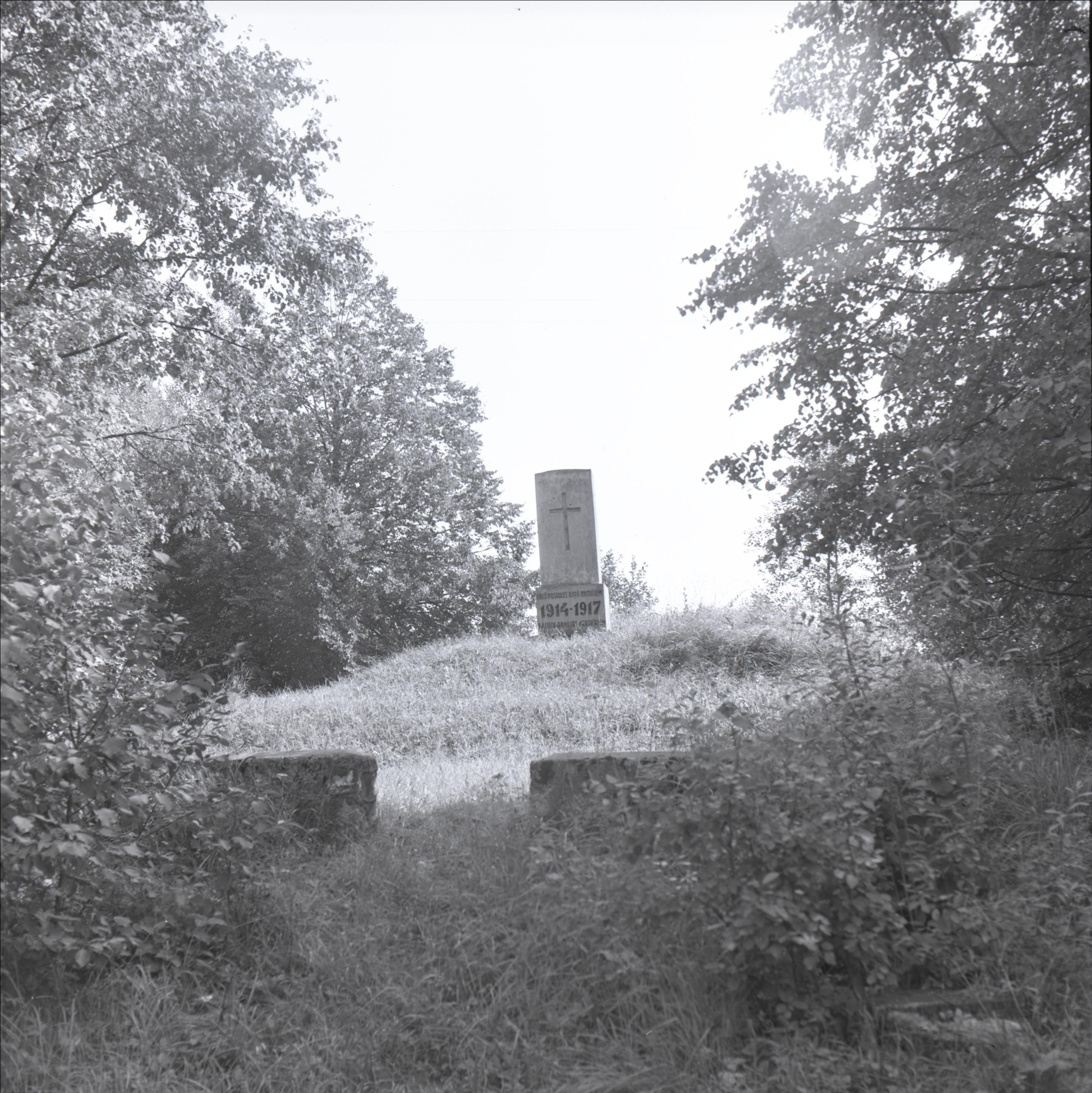 I pasaules kara brāļu kapi pie Medumiem: Piemineklis ar krustu, sēta, tuvplāns