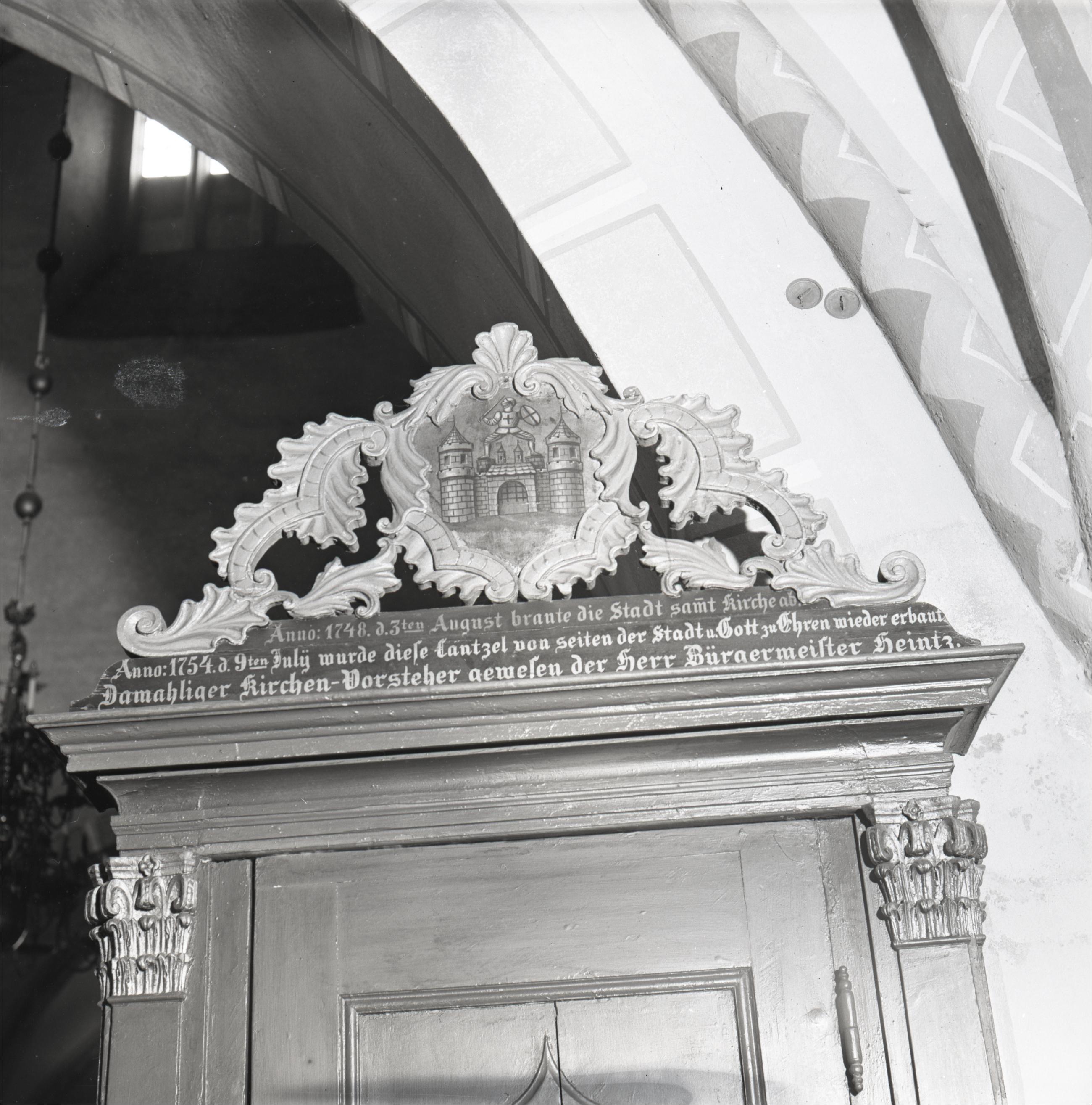Cēsu Sv. Jāņa evanģēliski luteriskā baznīca: Kancele, uzejas portāls, virs durvju daļas