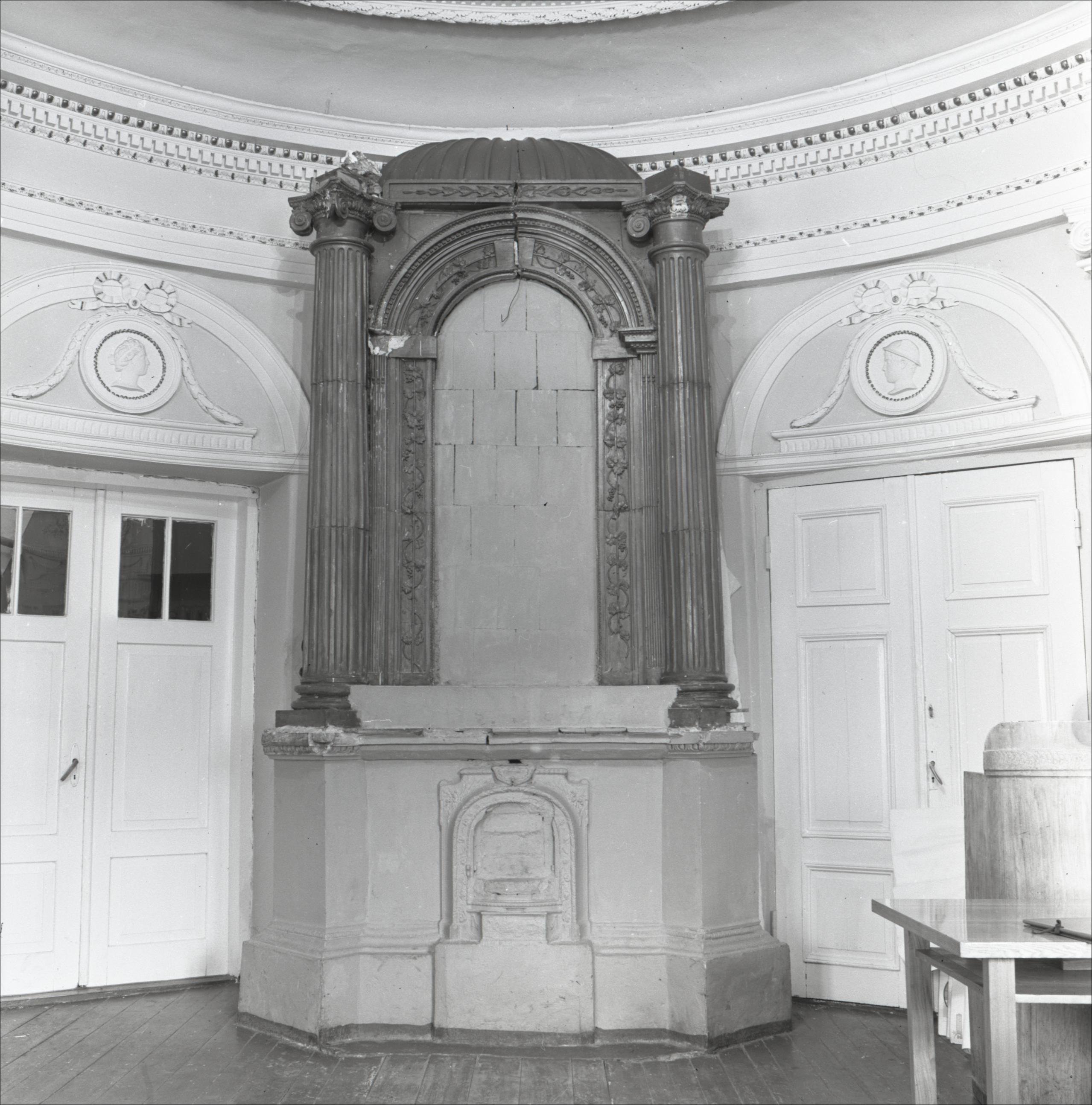 Alūksnes muižas apbūve: Palmu mājas 1. stāva zāle. Kamīns