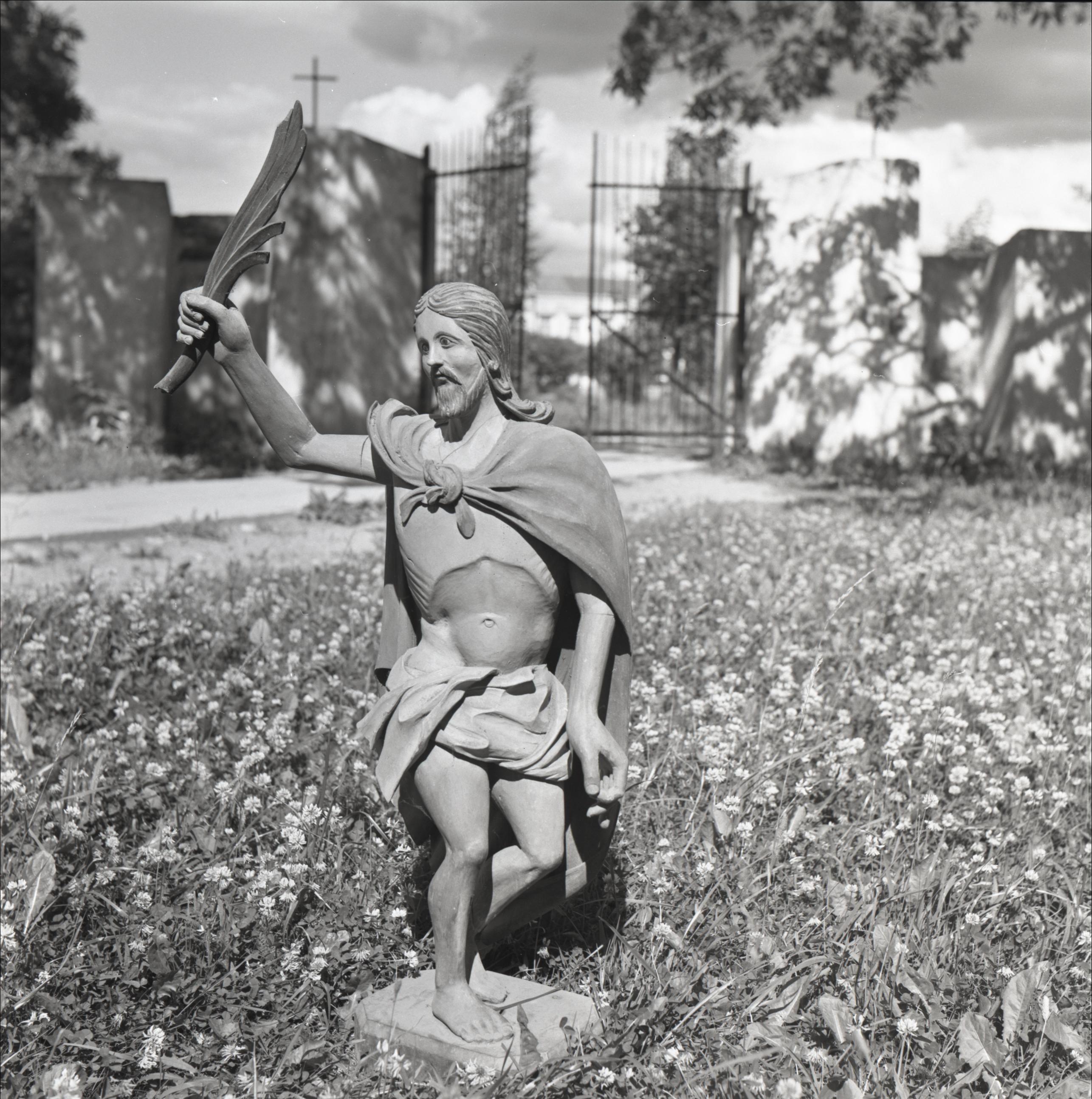 Malnavas katoļu baznīca ar kapelām (3) un žogu: Statuja