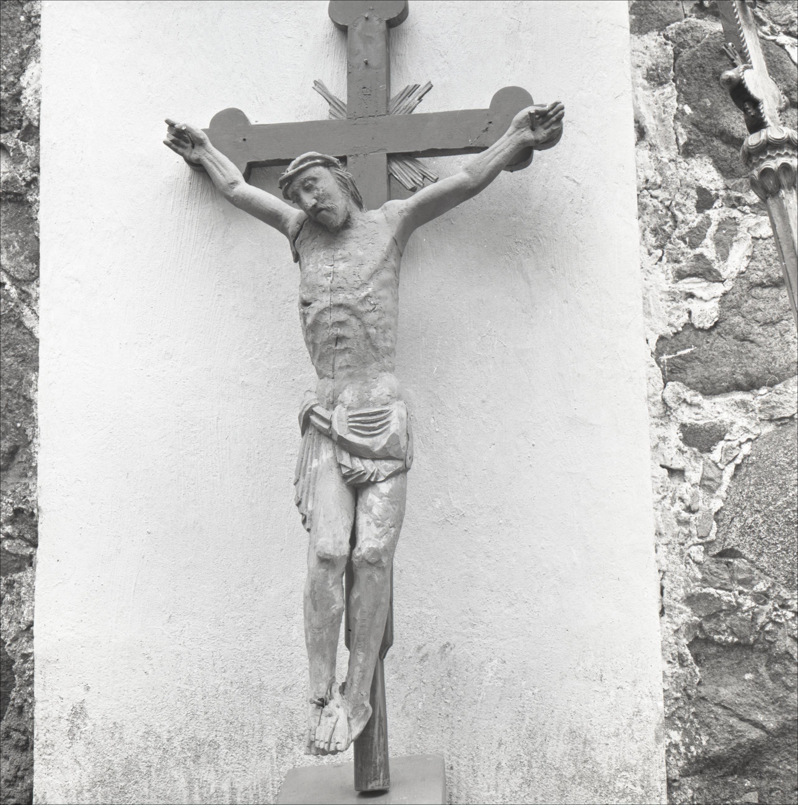 Pušmucovas katoļu baznīca ar žogu un vārtiem: Krucifikss