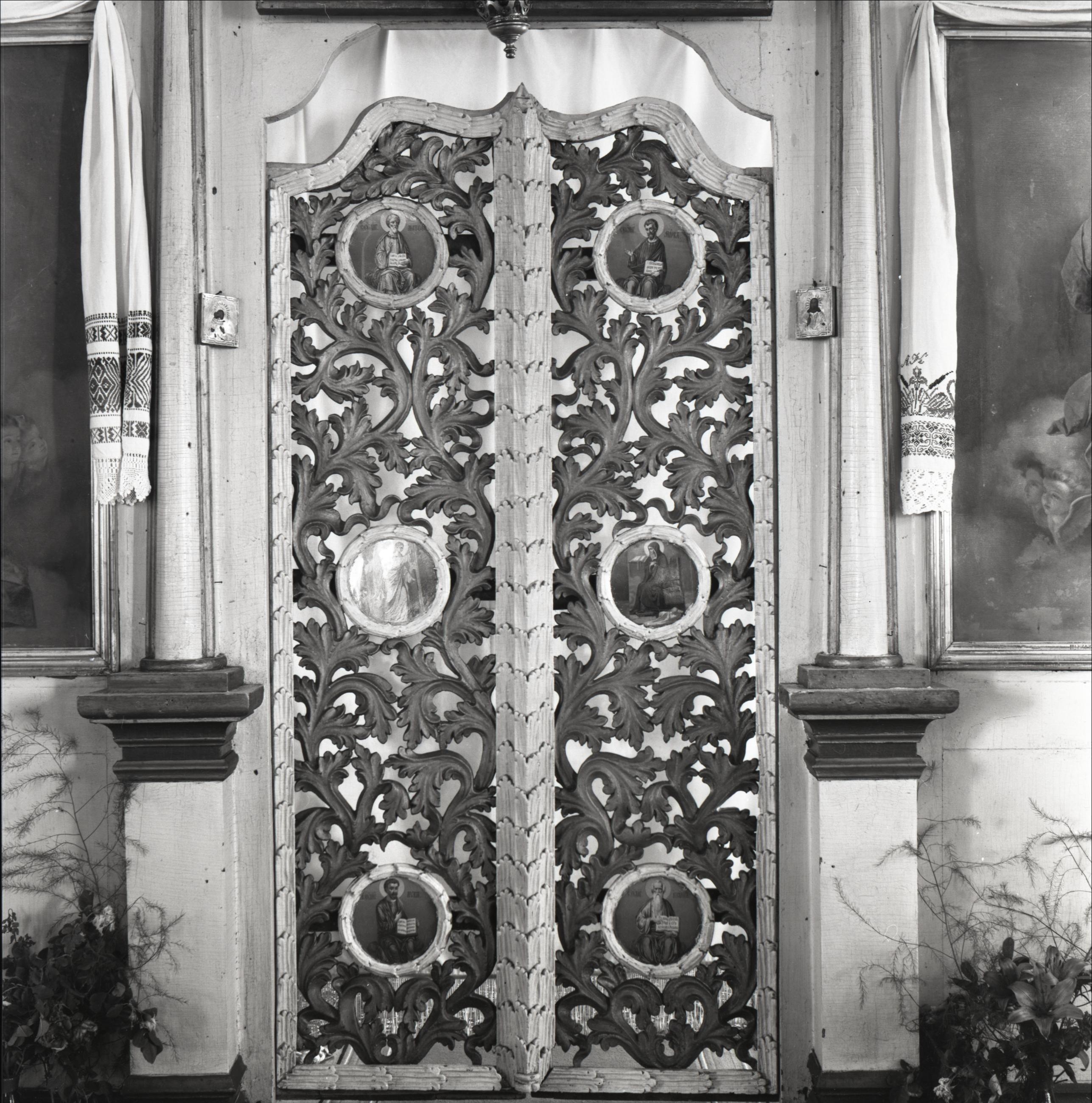 Brodaižas pareizticīgo baznīca: Durvis ar gleznām un kokgriezumiem ikonostasa centrā